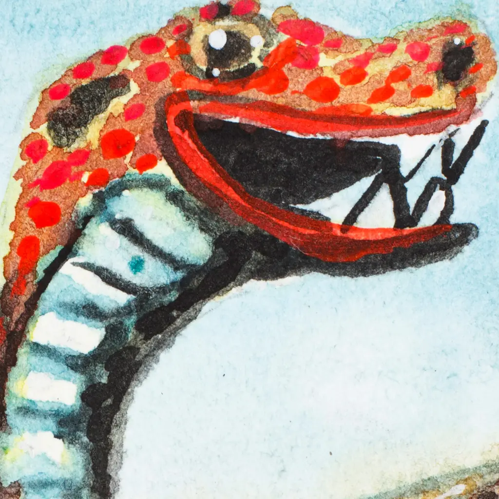 Classic Expressionist Watercolor Alebrije Red Snake Painting- Red-Dot Snake Alebrije
