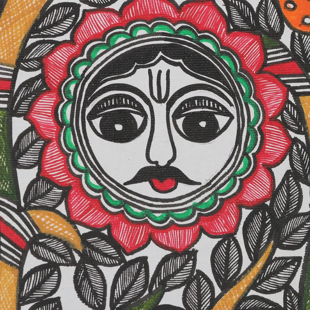 Classic Natural Dye Madhubani Painting Of Sun And Elephant- Mighty Sun