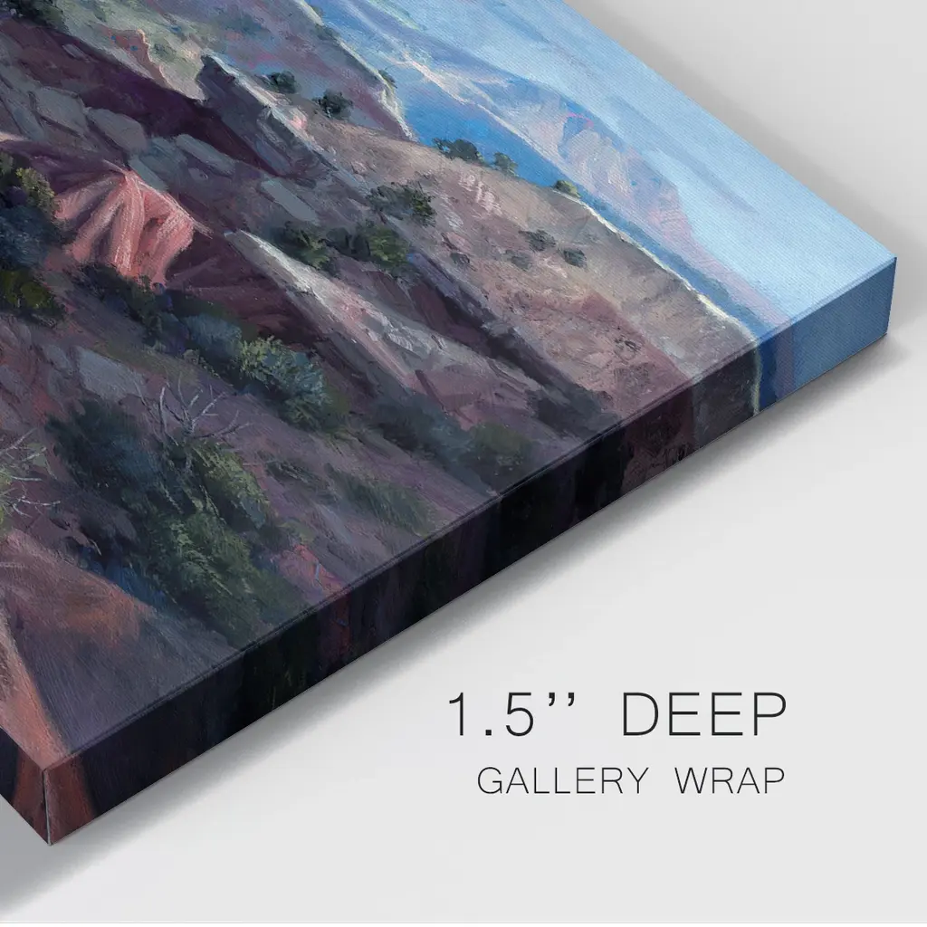 Classic Palo Duro Premium Gallery Wrapped Canvas - Ready to Hang A premium hand stretched gallery wrapped canvas print created to last. Featuring a beveled a solid wood stretcher bar, each piece comes ready to hand 6 SIZES AVAILABLE 8''X12'' - Overall Size 12''X18'' - Overall Size 18''X27'' - Overall Size 24''x36'' - Overall Size 32''x48'' - Overall Size 40''x60'' - Overall Size Each piece is made to order. Built to Last Each piece comes ready to hang Solid wood stretcher Fade and Water resistant Made domestically
