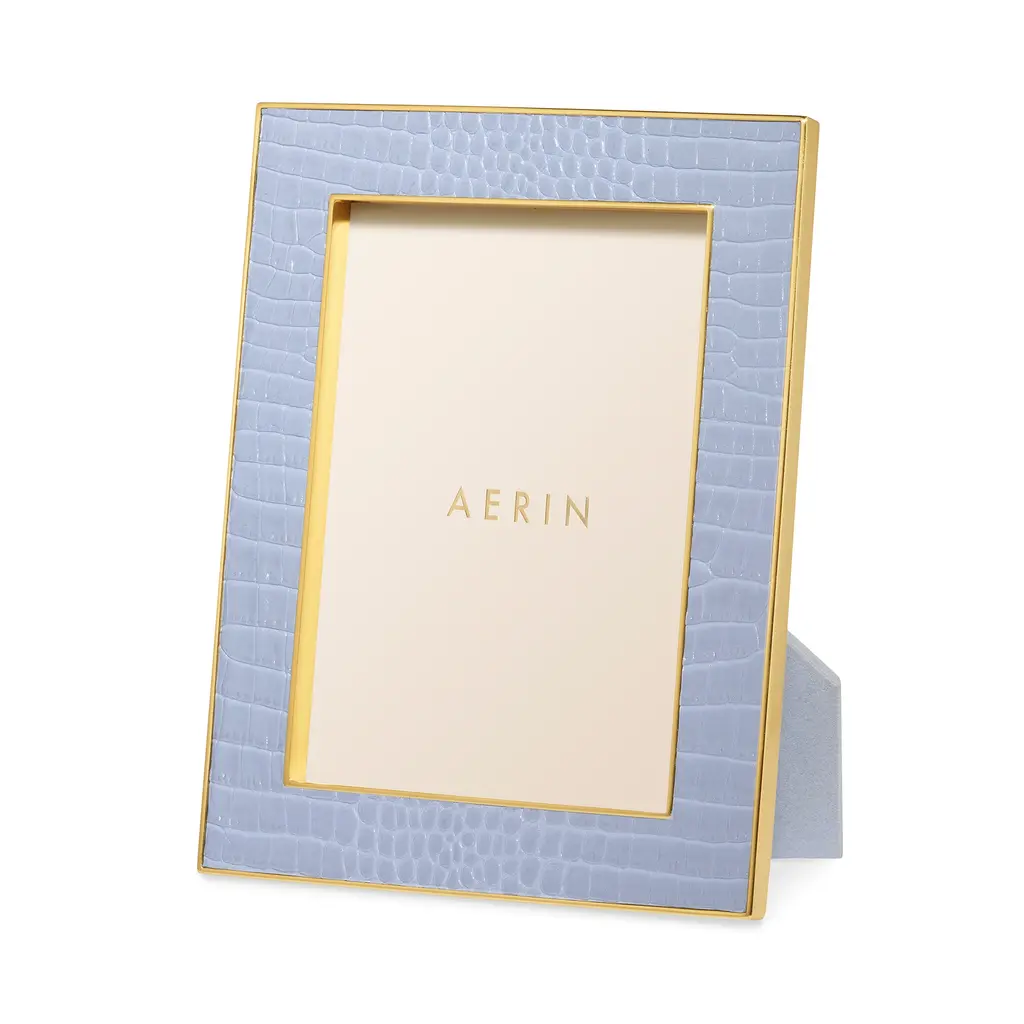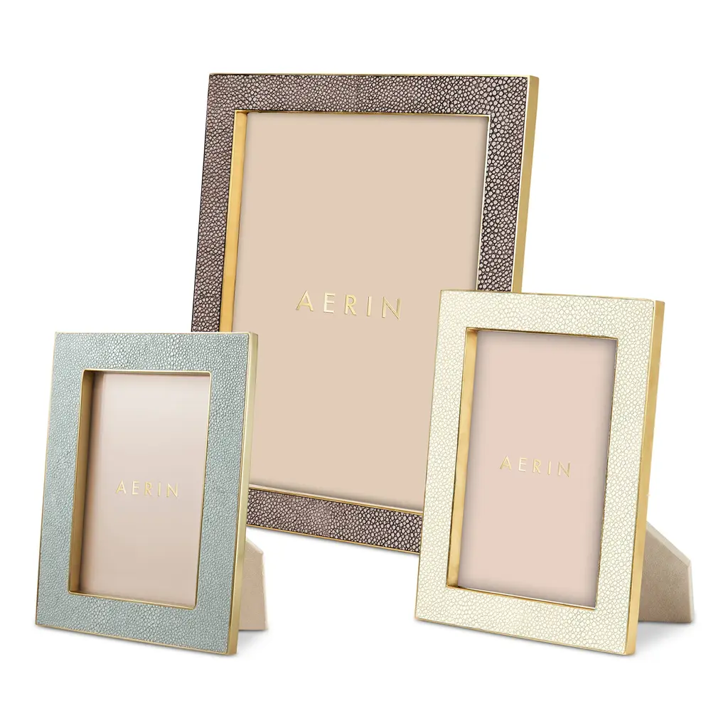 Combining the luxury and texture of embossed shagreen with the brilliance of polished brass trim, the Classic Shagreen Frame from AERIN presents an elegant way to display a cherished photo or artwork.
