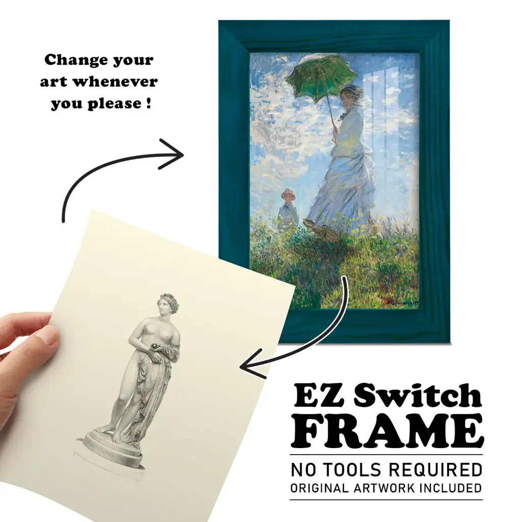 Classical Statuary I -EZ SWITCH Framed Print w/glass-Cherry Red A delightful, framed print. Featuring a solid wood frame with real wood glass. This premium print is giclee quality. In addition, every frame features a removable back and table top stand. This allows you to change your art in the future or to just stand the art on a table for a new look. We are sure you'll enjoy our new series of EZ SWITCH Framed Art. Solid Wood Frame Real Glass Removable / Replaceable Art Built in Tabletop Stand Sizes range from 4x6 up to 12x15 - buy just one or pair them up as sets as you see fit.