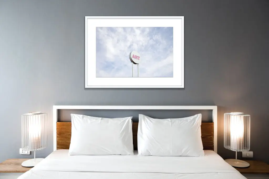 Taken of a sign that spells out "art" in a cloudy blue sky, this image from Claudia Lucia gets straight to the point. Printed on high-quality photo paper and displayed in a pine frame, this piece arrives ready to hang.Drawing from her native Southern California setting, photographer Claudia Lucia favors bright, airy compositions and uses carefully chosen, deliberate color palettes. Typically an editorial photographer, her images of spaces provide an opportunity for exploration through a lens, a concept which drew her to photography as a child and continues to inspire her work.