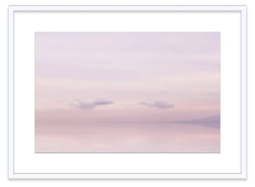 This image from Claudia Lucia captures two cumulous clouds floating amongst vast purple-and-pink skies. Printed on high-quality photo paper and displayed in a pine frame, this piece arrives ready to hang.Drawing from her native Southern California setting, photographer Claudia Lucia favors bright, airy compositions and uses carefully chosen, deliberate color palettes. Typically an editorial photographer, her images of spaces provide an opportunity for exploration through a lens, a concept which drew her to photography as a child and continues to inspire her work.