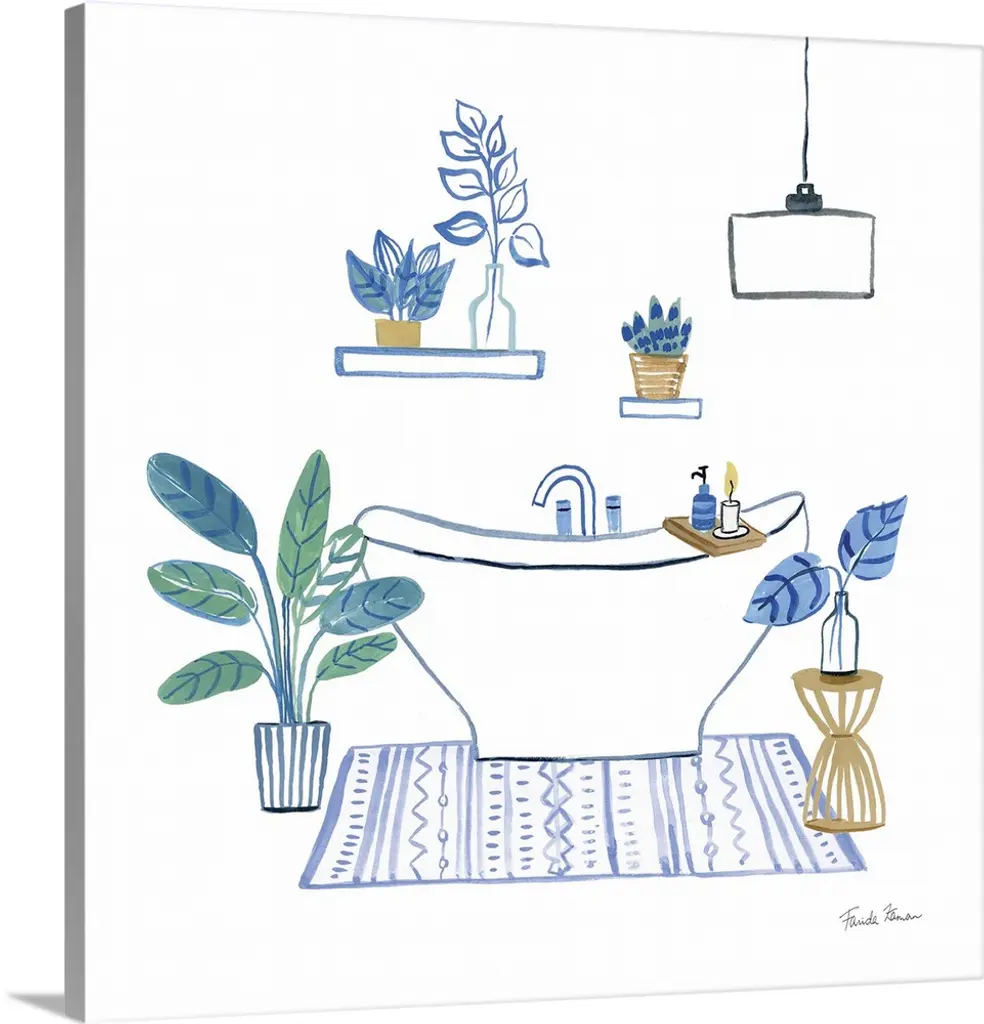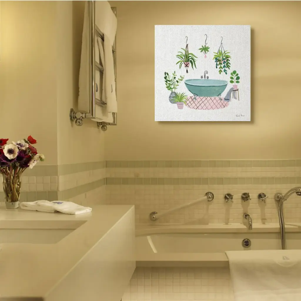 Claw Bath With Hanging Plants Greenery Pink Artwork,1pc, Each 30 X 30