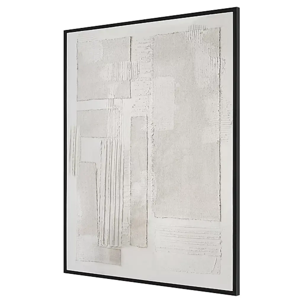 The Clean Slate Hand Painted Wall Art from Uttermost celebrates minimalism through deliberate restraint. Textural techniques create subtle topography across monochromatic terrain, revealing the artist's hand without relying on color variation. Geometric framework underlies the seemingly simple composition, providing structure beneath apparent randomness. The black frame creates decisive boundaries that contain the expansive white field. This painting brings contemplative quietude to busy environments and becomes an intentional breath of visual simplicity. Its versatile orientation allows adaptive placement in various spaces.