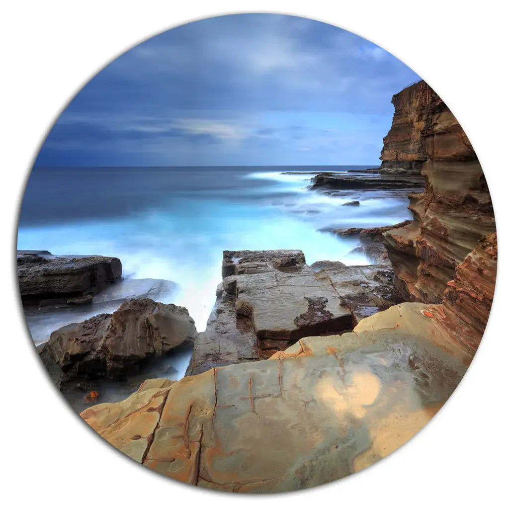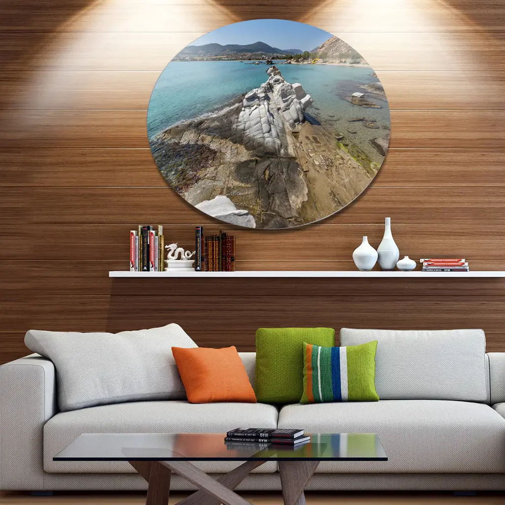 Clean Waters And Rock Formations, Landscape Disc Metal Wall Art, 11"
