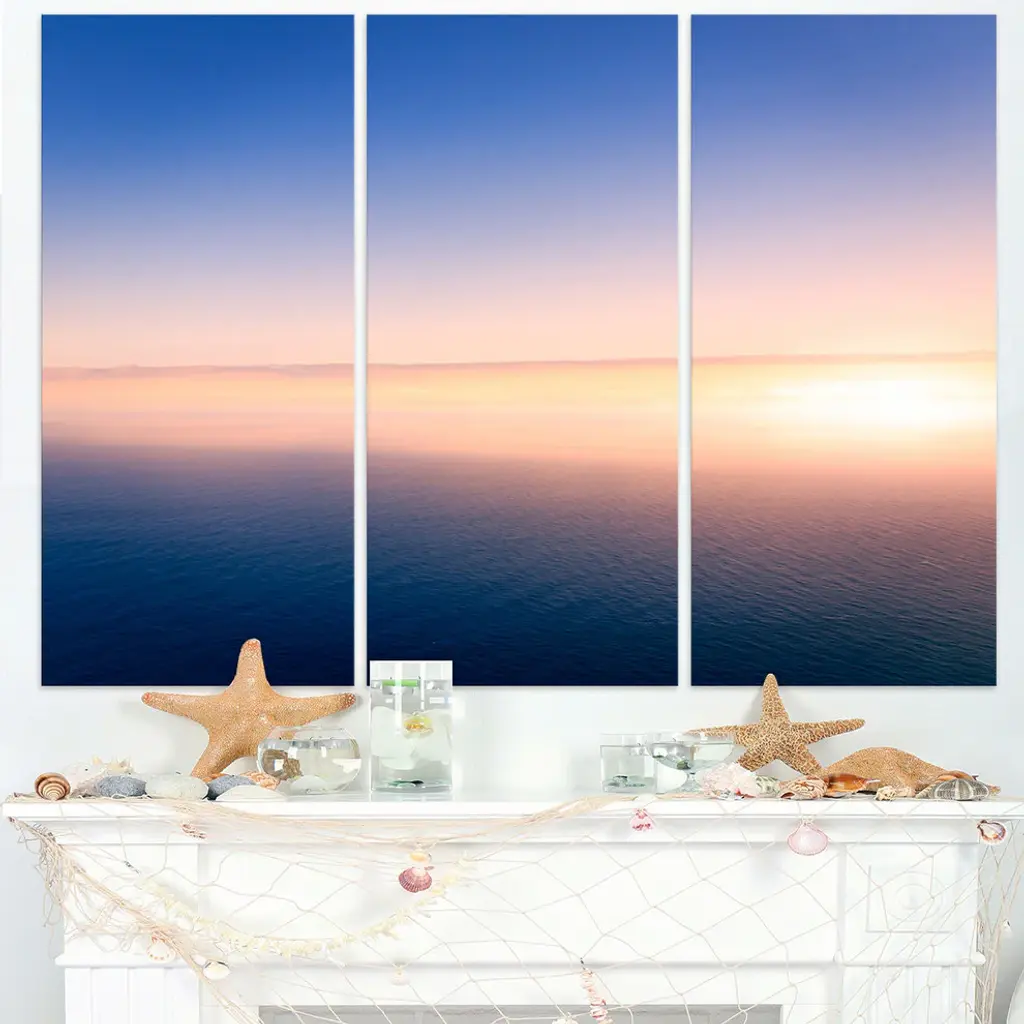 "Clear Blue Sky Above Clouds" Oversized Beach Metal Wall Art, 3 Panels, 36"x28"