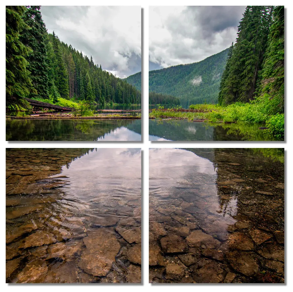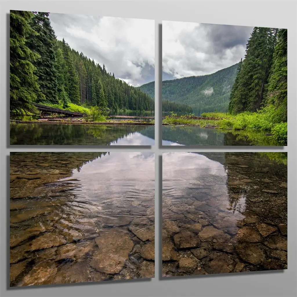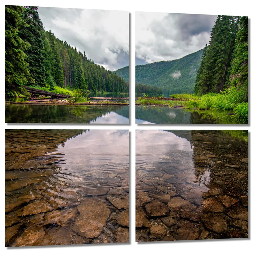 Clear Lake In Mountains Metal Print, 4 Panel Split, Quad Hd Aluminum, 30x30