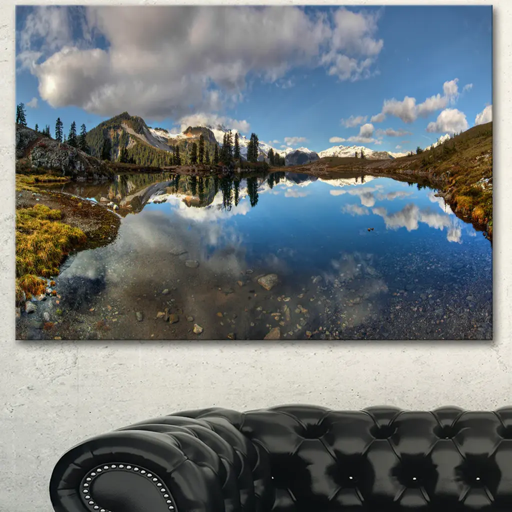 Clear Lake With Pine Trees Panorama, Landscape Canvas Art Print, 60"x28"
