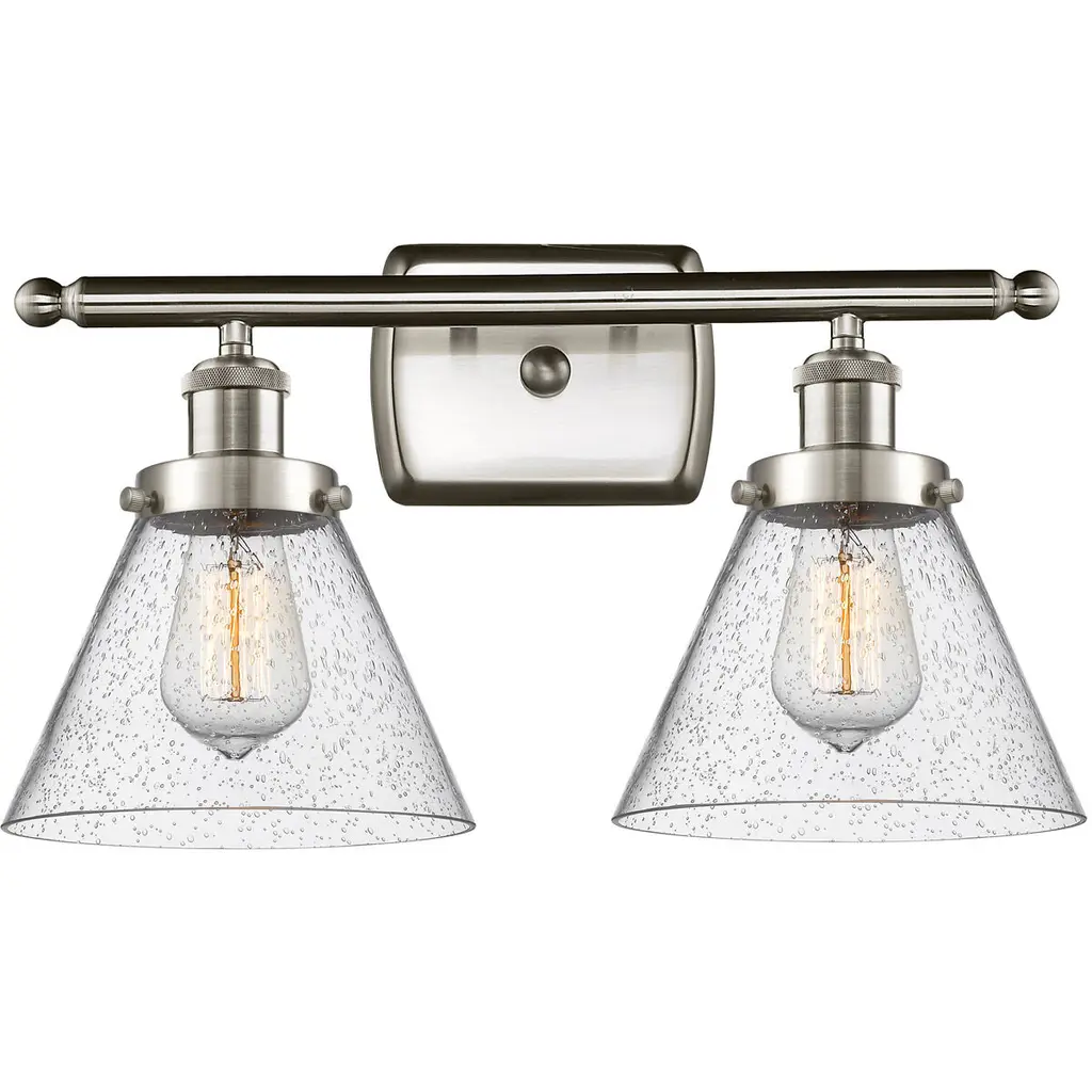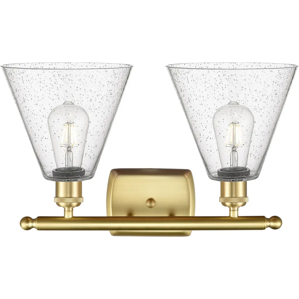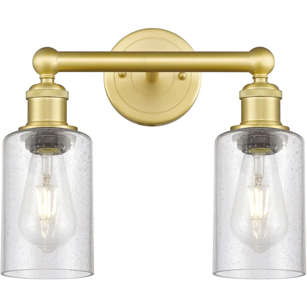 A multi-textured piece full of confidence and refined design. Set your bathroom off as the Clear Seeded Vanity Light from Quorum International rests handsomely over your mirror. A stylish circular backplate mounts against the wall without taking up too much space. Crisp, industrial-inspired lamp holders arch from a tubular crossbar, showcasing bold, knurled accents made in a specialized mechanical process. A radiant light glazes across your figure with a sense of warmth, filtered through the shimmering surfaces of a clear seeded glass shade.