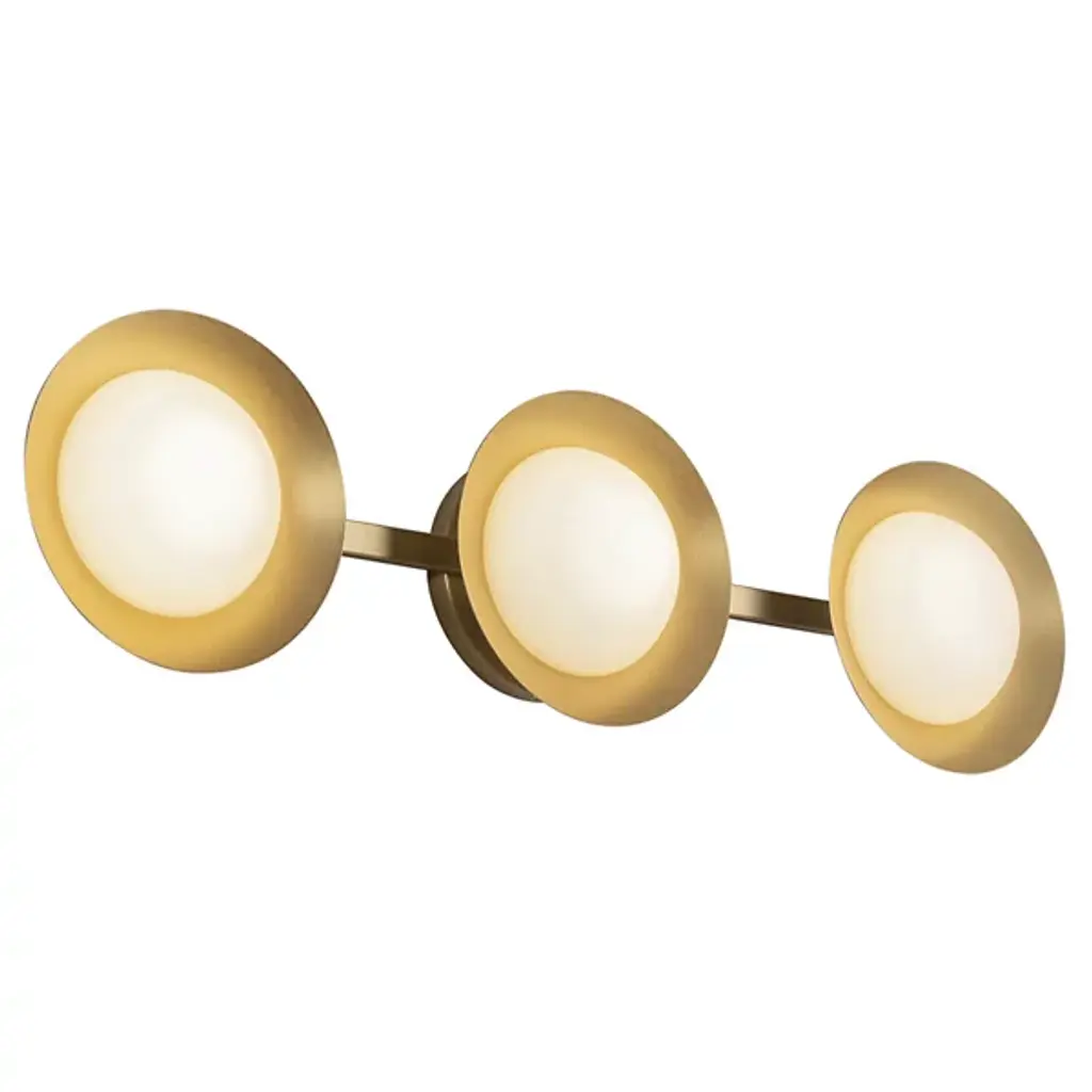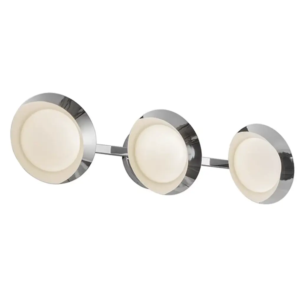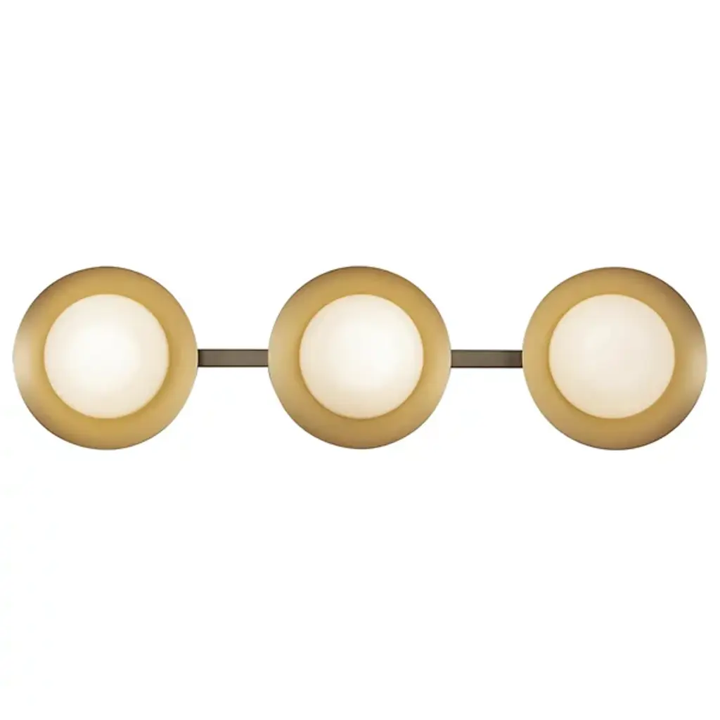 The Cleo LED Vanity Light from Kuzco Lighting places oversized opal diffusers within circular disc frames to create bathroom lighting with personality. Peyton Fox designed this wall-mounted fixture to deliver forward-facing illumination ideal for personal grooming tasks. Steel construction paired with glass diffusers ensures durability while maintaining a clean aesthetic that works across decorating styles. The integrated LED technology eliminates bulb replacement while maximizing energy efficiency. Multiple mounting options allow for horizontal or vertical installation, depending on your space. This vanity light offers practical illumination with a fresh approach to bathroom lighting that moves beyond purely utilitarian designs.