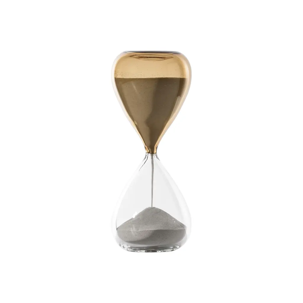 Perfectly balanced between two different colours, the sand flows through the sleek glass chambers made using the Incalmo technique, taking on its colour and becoming a part of it. Grains of sand, impalpable and imperceptible as a whole, yet so real, like time passing. Fulvio Bianconi and Paolo Venini sealed it in the Clessidra in 1957Little grains of sand, impalpable and unnoticeable as a whole yet so real, like time ticking away. Clessidra – designed by Fulvio Bianconi and Paolo Venini in 1957 – evolves in 2015, taking on a more sinuous, feminine appearance. Perfectly balanced between two different colors, sand flows through sleek glass, crafted using the Incalmo technique; as it flows, it gradually colors and becomes an integral part of the glass.Additional Information:Material: Glass, sandColor: Gray/redDimensions: Ø 15 x H 28 cmAvailable in other color options: Green river /Powder pink, bamboo/aquamarineAvailable in other structural optionsLimited edition in 199 art pieces for each color.