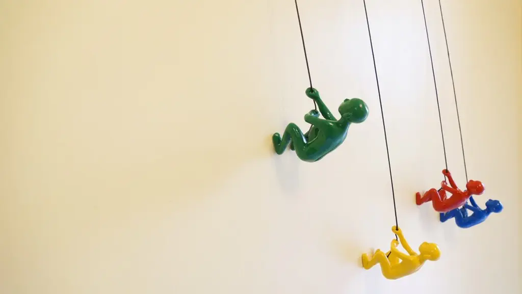Climbing Man Position #3 Wall Art, Set Of 4, Green, Yellow, Red And Blue