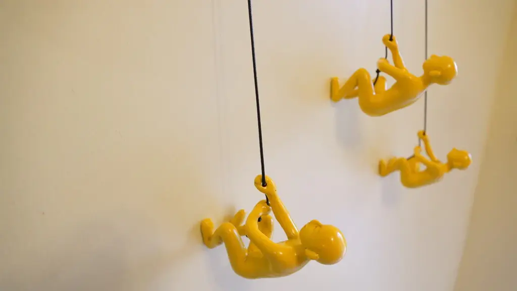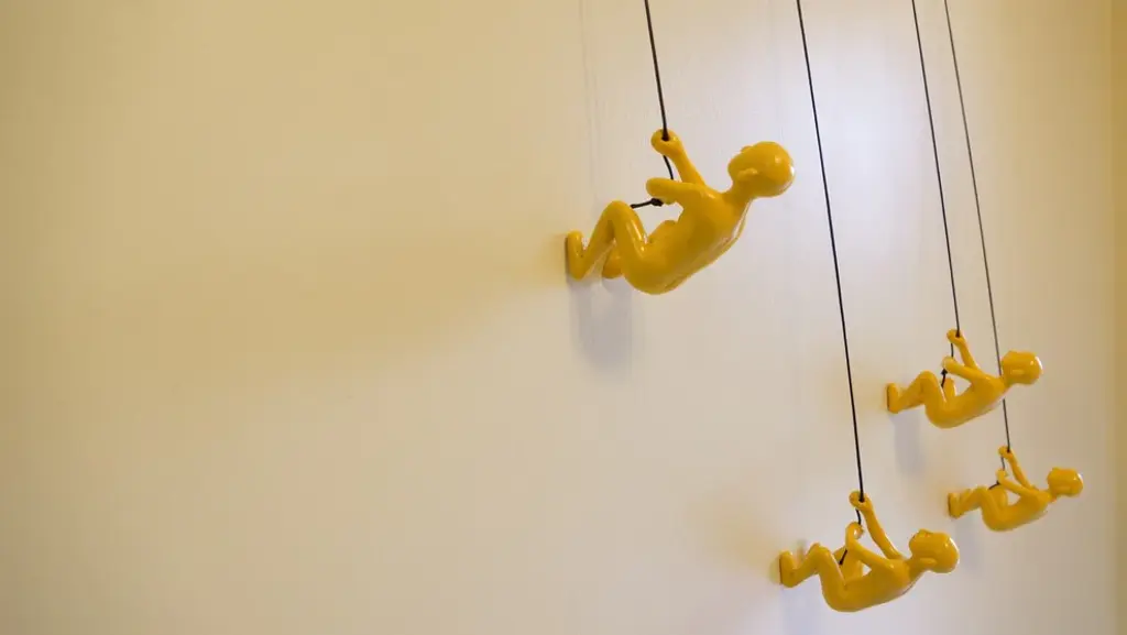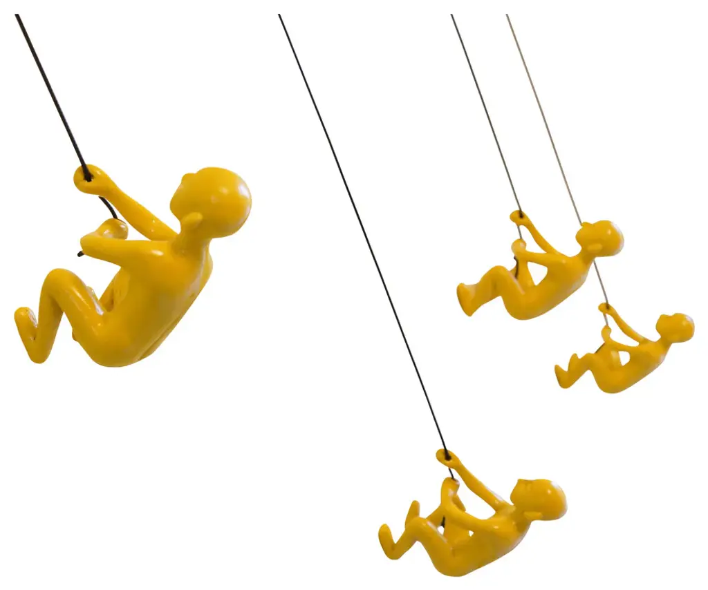 Climbing Man Position #3 Wall Art, Set Of 4, Yellow