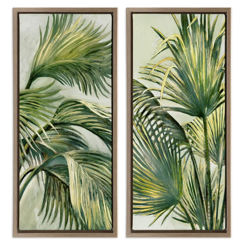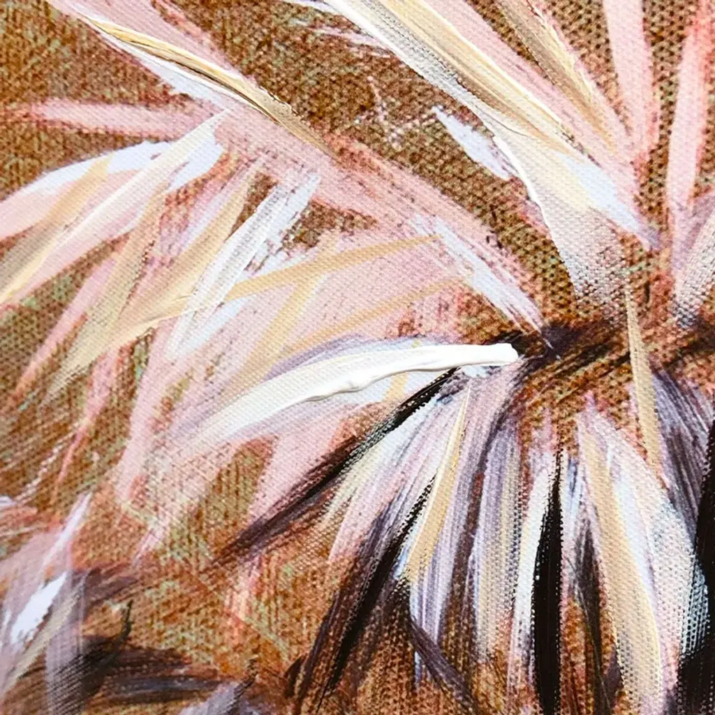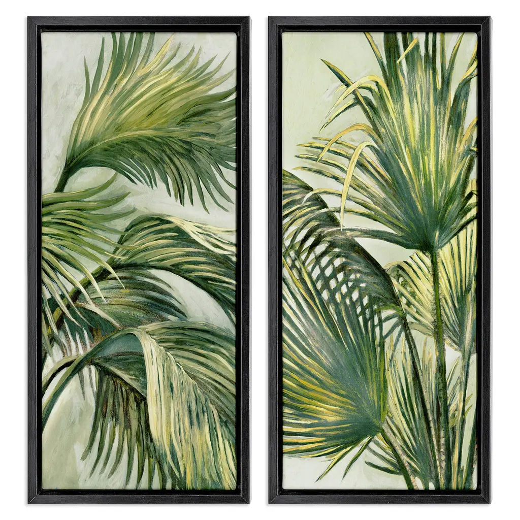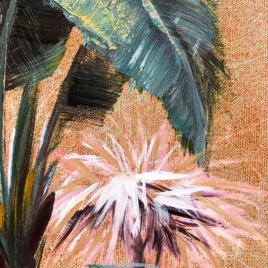 Clorofilla is a nature painting divided into three hand-painted canvases. The tropical plants depicted are distributed continuously across the three panels. The color palette is warm and lends an exotic touch to the setting. With wooden inner frames and painted edges, the paintings are ready to hang.The AGAVE Quadri collection represents the excellence of contemporary art applied to the world of interior design. Each piece, hand-painted with artisanal techniques by the finest artists in collaboration with the Italian company AGAVE, combines abstract, natural, and figurative elements to create unique and refined works. These paintings transform spaces into environments of great elegance and character, perfect for interior design projects that require a distinctive and artistic touch.