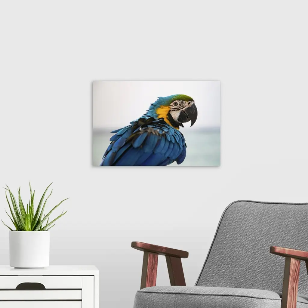 Close-Up Portrait Of A Parrot, Macaw, The Maldives, Indian Ocean wall art for home and office decor. Discover canvas art prints, photos, mural, big canvas art and framed wall art in GreatBigCanvas.com's varied collections.