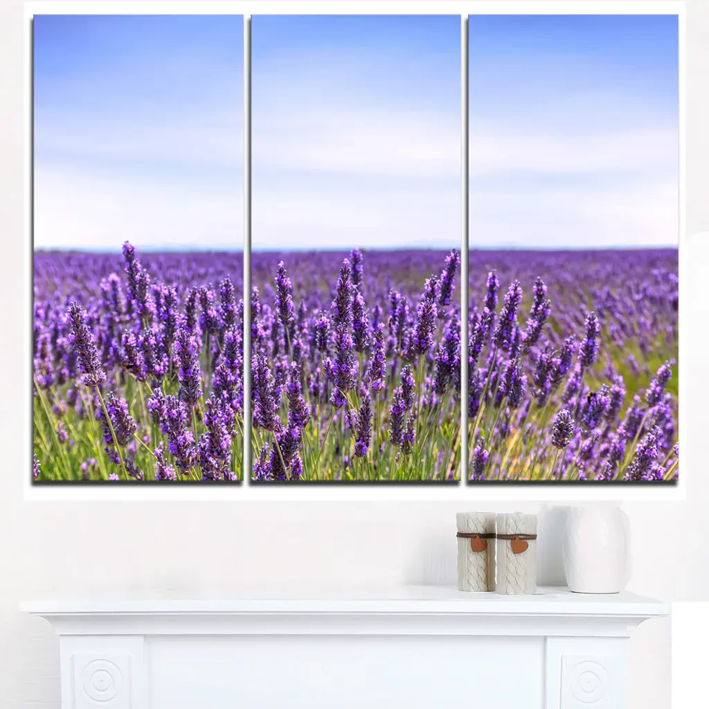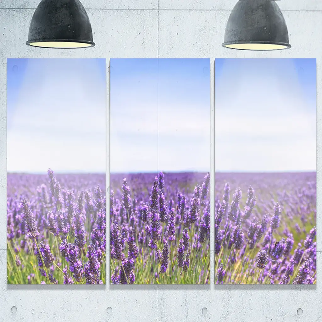 "Close View Of Lavender Flower Field" Metal Wall Art, 3 Panels, 36"x28"