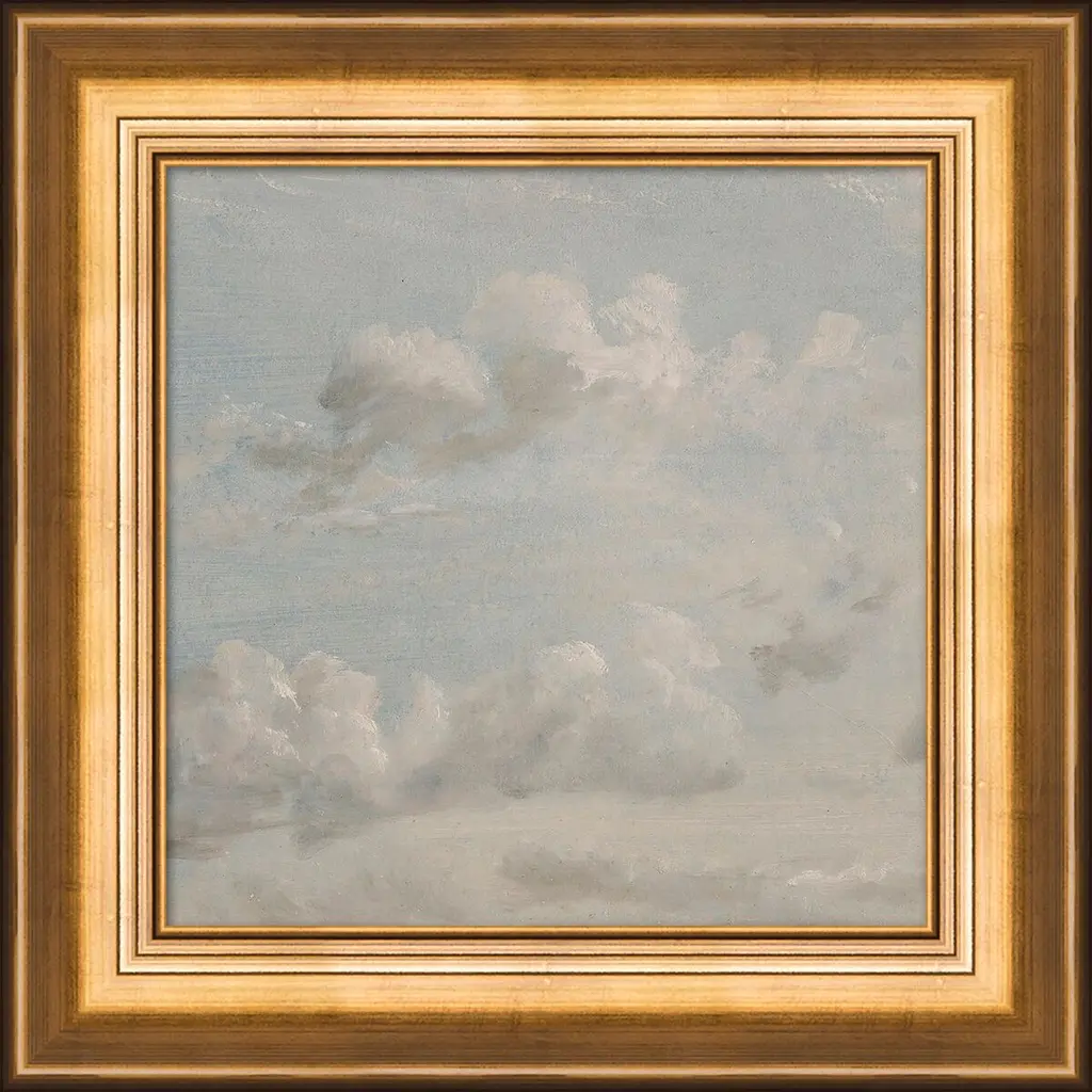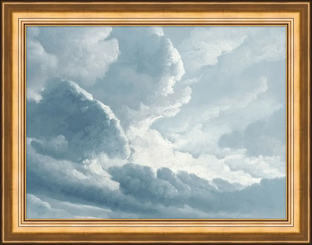 A dreamy view of soft clouds printed on canvas. Arrives ready to hang.