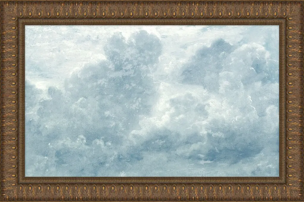 A dreamy view of soft clouds printed on canvas. Arrives ready to hang.