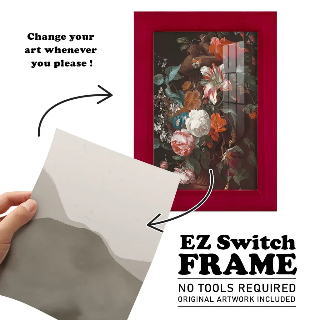 Cloud Kiss II -EZ SWITCH Framed Print w/glass-Cherry Red A delightful, framed print. Featuring a solid wood frame with real wood glass. This premium print is giclee quality. In addition, every frame features a removable back and table top stand. This allows you to change your art in the future or to just stand the art on a table for a new look. We are sure you'll enjoy our new series of EZ SWITCH Framed Art. Solid Wood Frame Real Glass Removable / Replaceable Art Built in Tabletop Stand Sizes range from 4x6 up to 12x15 - buy just one or pair them up as sets as you see fit.