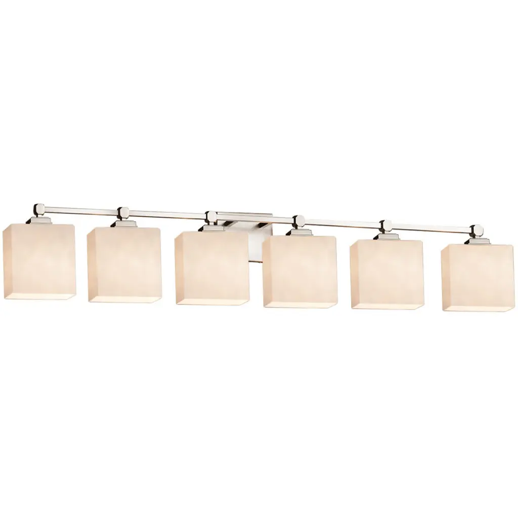 Clouds 6 Light 48.5 Inch Brushed Nickel Vanity Light Wall Light In Cylinder With Flat Rim, Incandescent