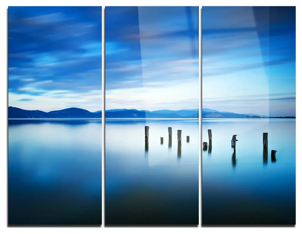 "Clouds Reflection In River" Photo Metal Wall Art, 3 Panels, 36"x28"