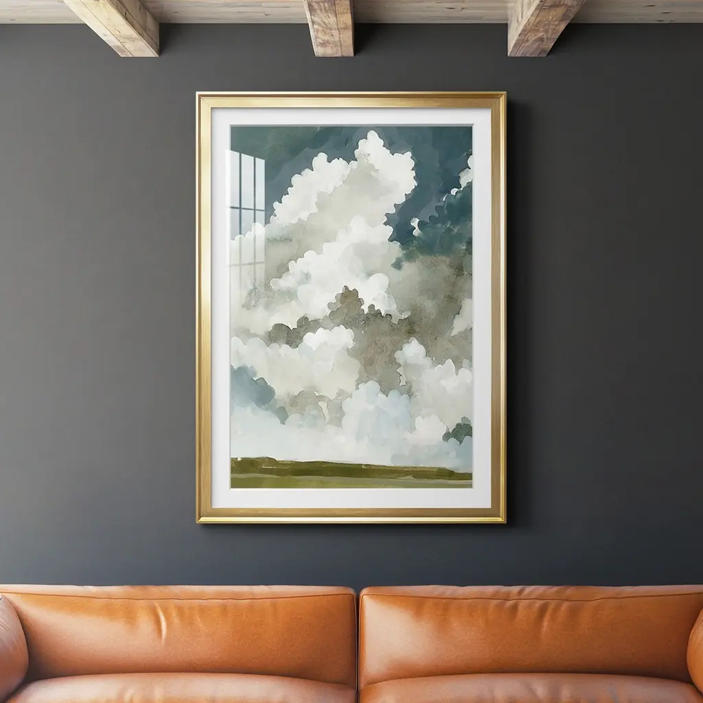 Elevate your wall decor with the iconic work of textile artist, engraver, and painter Paule Marrot. Each print captures her simple, lyrical style with boldness and fidelityoffering wall art with a fresh yet enduring appeal. Tufts of clouds on a bright blue sky bring a serene feel to this piece.