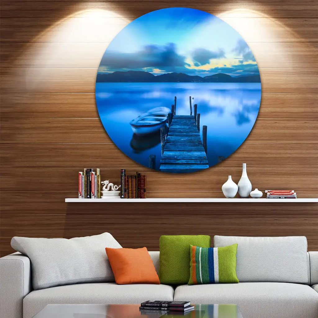 Bring Contemporary Abstraction to your home with this large Circle Metal wall art. This Cloudy Blue Sky with Pier Metal Artwork makes it the focal point of any room or office. - White Gloss Coating ensures colors are extra vibrant with light reflection.- Aluminum grade Sheet Metal with 1 inch mounting frame on the back giving the illusion that the artwork is floating on the wall..- Mounting Brackets are included along with instructions.- High Quality Digital images are created directly into a glossy aluminum panel producing a stunning and captivating print into the glossy finish of the metal.- Water, Fire and Scratch resistant HD Aluminum panels.- Looks better than any photo paper and guaranteed to last at least 20 years- Easy to clean with a microfiber cloth. Colors are far superior to regular Canvas Art. - Easy to Hang
