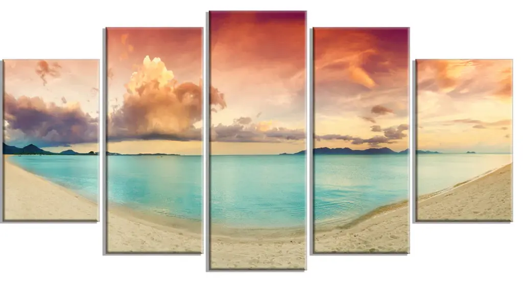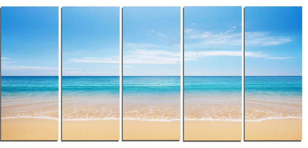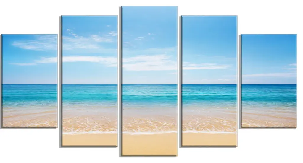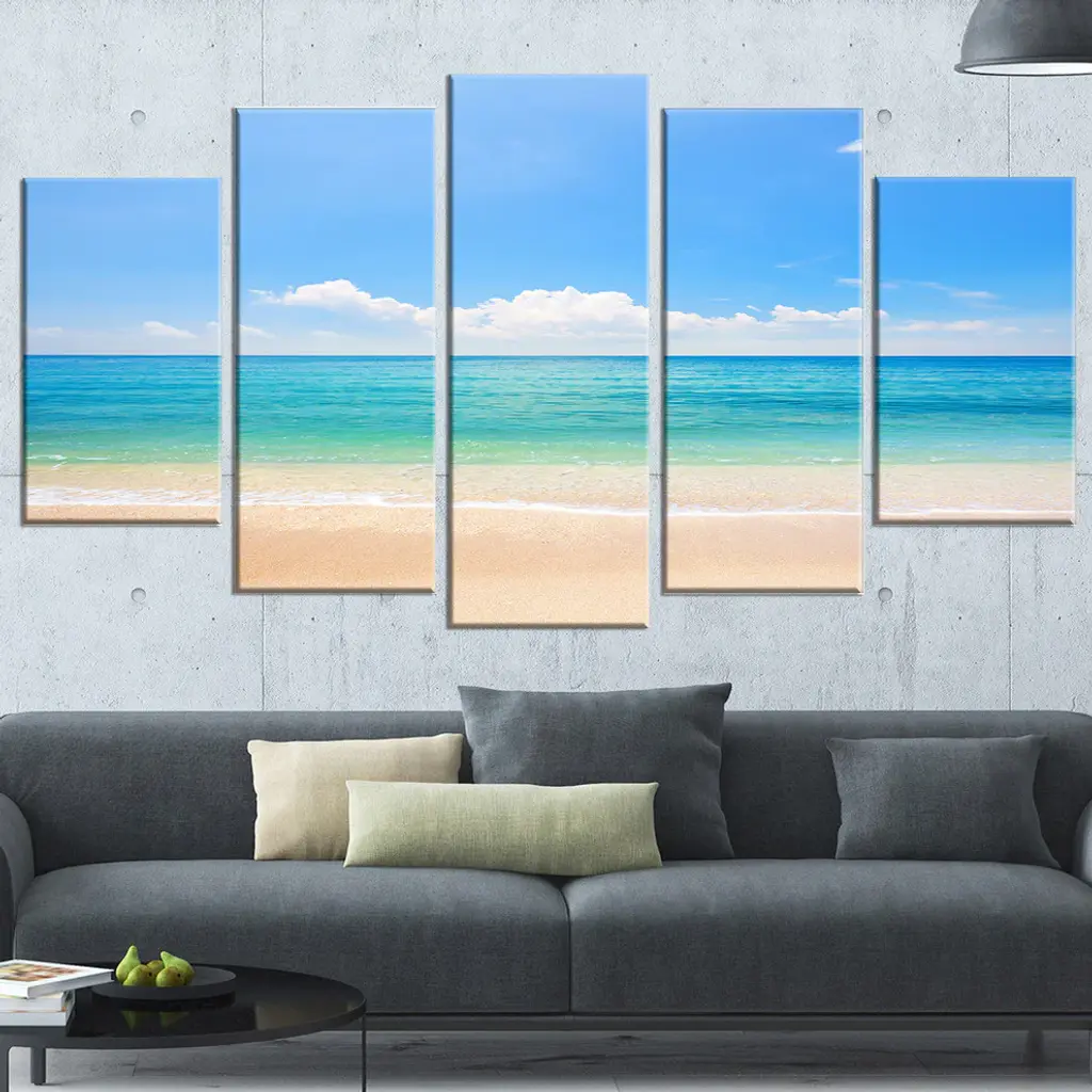"Cloudy Horizon Over Beach" Seashore Canvas Photo Print, 5 Panels, 60"x32"