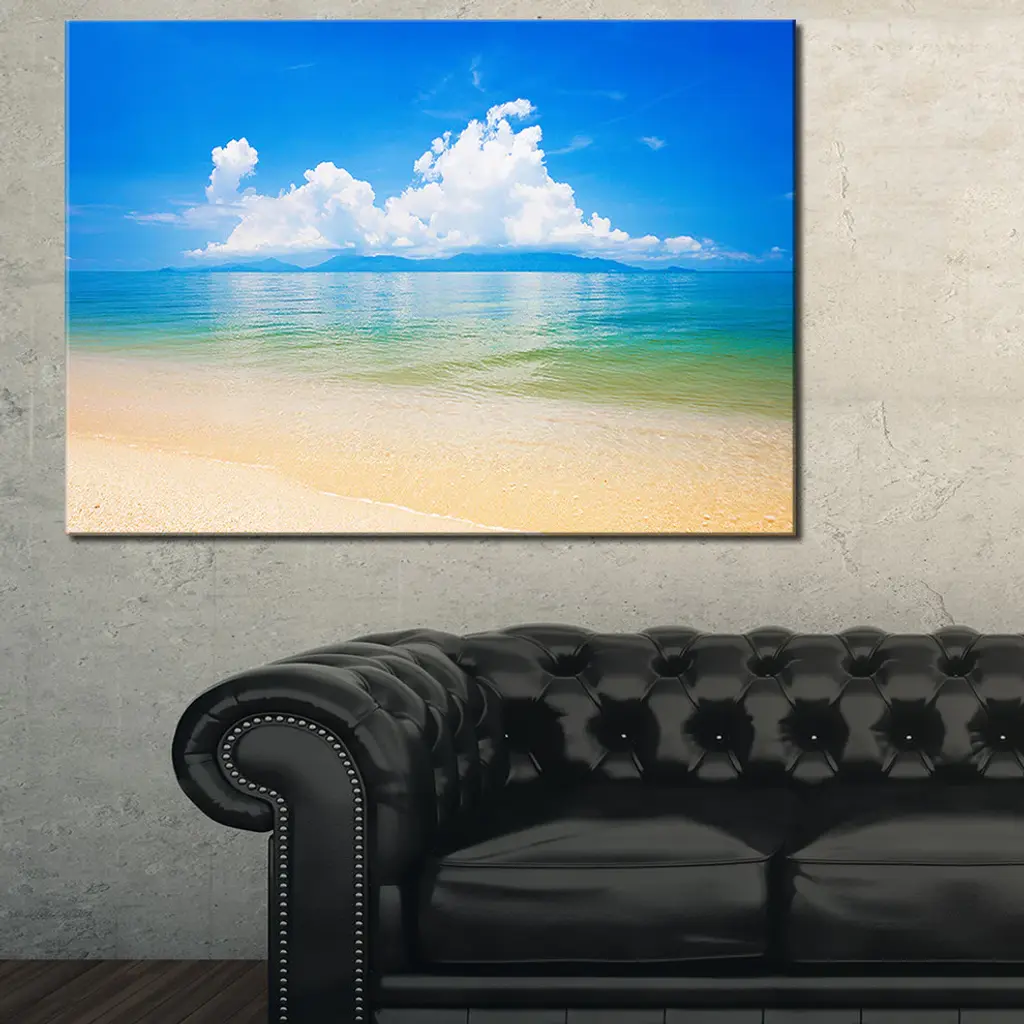 "Cloudy Horizon Over Blue Sea" Seashore Canvas Photo Print, 40"x20"