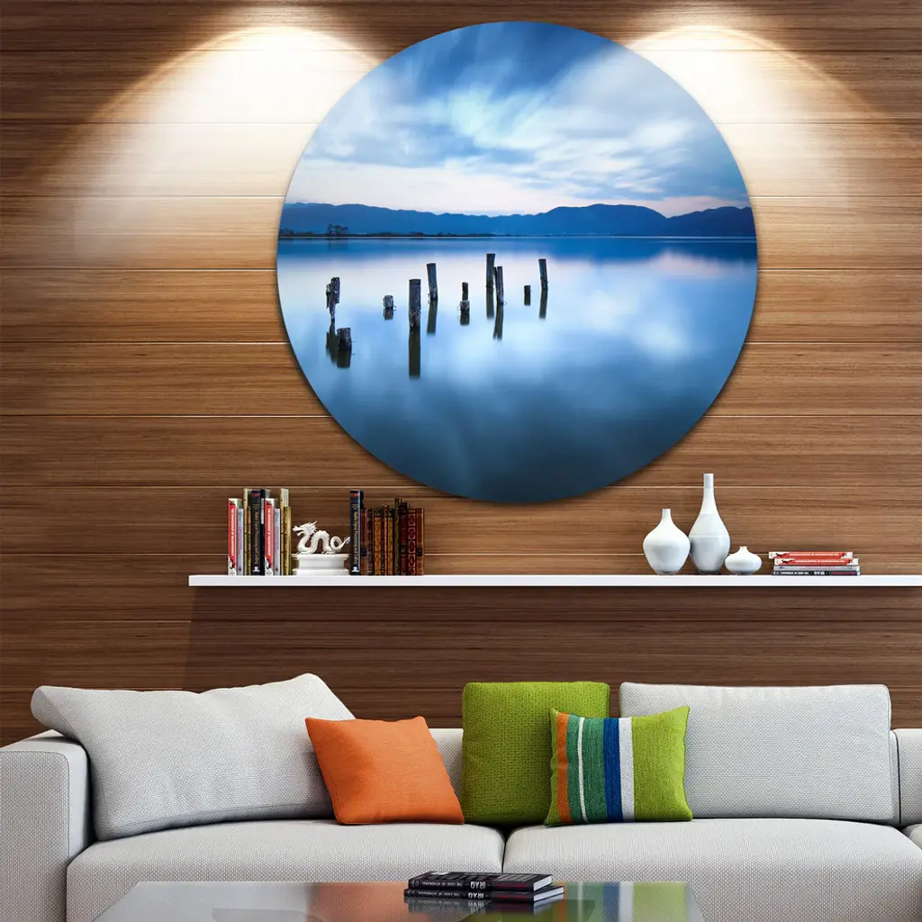 Cloudy Sky Above Lake, Seascape Photo Disc Metal Artwork, 23"