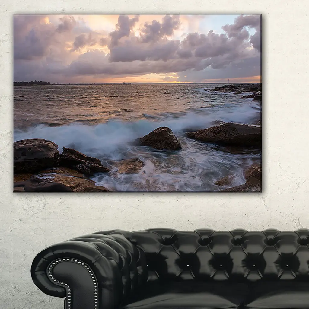 The Cloudy Sky and Stormy Waves in Sydney canvas art print is sure to make an impression on anyone who sees it. This artwork is gallery wrapped around a 1-inch solid wood frame and arrives carefully packaged and entirely ready to hang on the wall. Design Art only uses the highest resolution and pigments to ensure a crisp colorful print that is never faded or pixelated. This artwork is sure to be a conversation starter in any home or office.