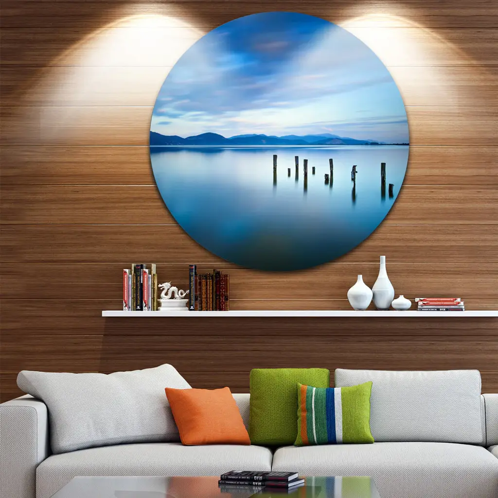 Bring Contemporary Abstraction to your home with this large Circle Metal wall art. This Cloudy Sky in Blue Sea Metal Artwork makes it the focal point of any room or office. - White Gloss Coating ensures colors are extra vibrant with light reflection.- Aluminum grade Sheet Metal with 1 inch mounting frame on the back giving the illusion that the artwork is floating on the wall..- Mounting Brackets are included along with instructions.- High Quality Digital images are created directly into a glossy aluminum panel producing a stunning and captivating print into the glossy finish of the metal.- Water, Fire and Scratch resistant HD Aluminum panels.- Looks better than any photo paper and guaranteed to last at least 20 years- Easy to clean with a microfiber cloth. Colors are far superior to regular Canvas Art. - Easy to Hang