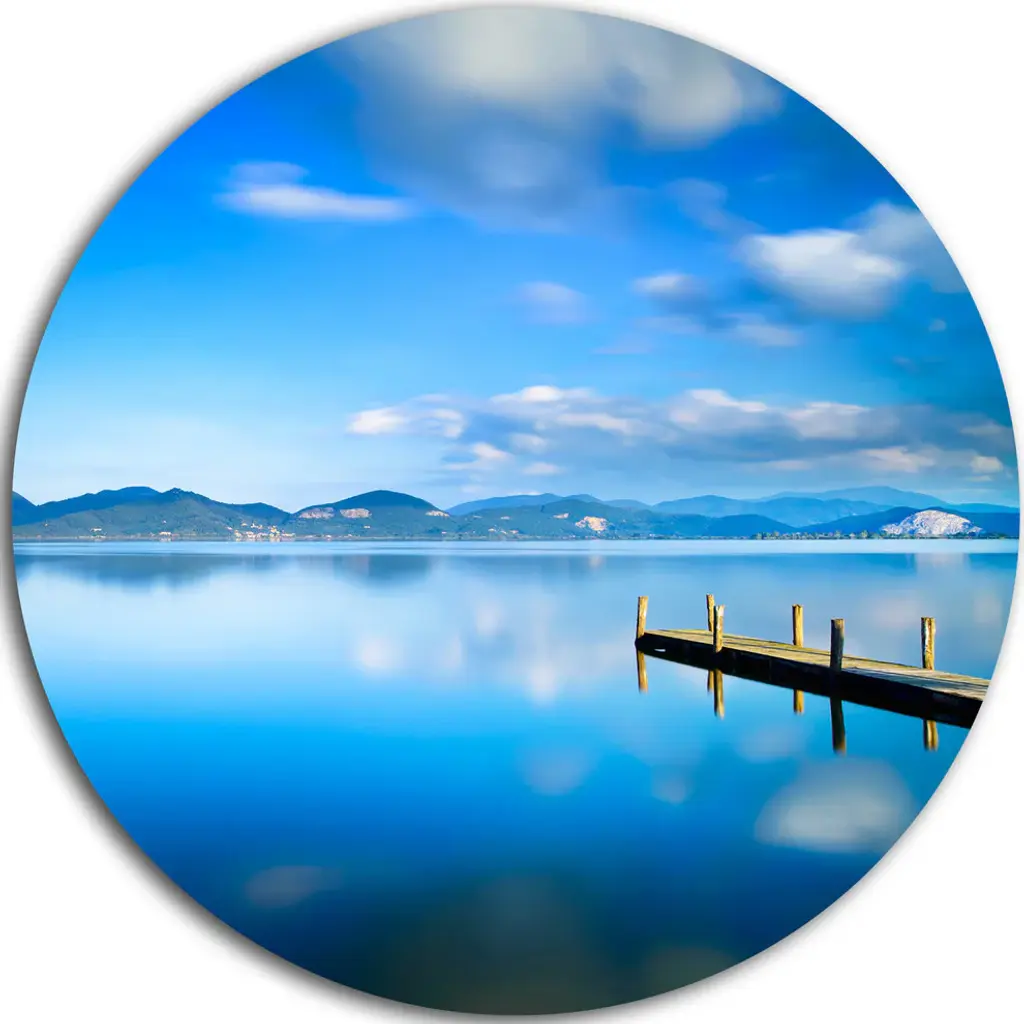 Bring Contemporary Abstraction to your home with this large Circle Metal wall art. This Cloudy Sky Over Blue Sea Metal Artwork makes it the focal point of any room or office. - White Gloss Coating ensures colors are extra vibrant with light reflection.- Aluminum grade Sheet Metal with 1 inch mounting frame on the back giving the illusion that the artwork is floating on the wall..- Mounting Brackets are included along with instructions.- High Quality Digital images are created directly into a glossy aluminum panel producing a stunning and captivating print into the glossy finish of the metal.- Water, Fire and Scratch resistant HD Aluminum panels.- Looks better than any photo paper and guaranteed to last at least 20 years- Easy to clean with a microfiber cloth. Colors are far superior to regular Canvas Art. - Easy to Hang