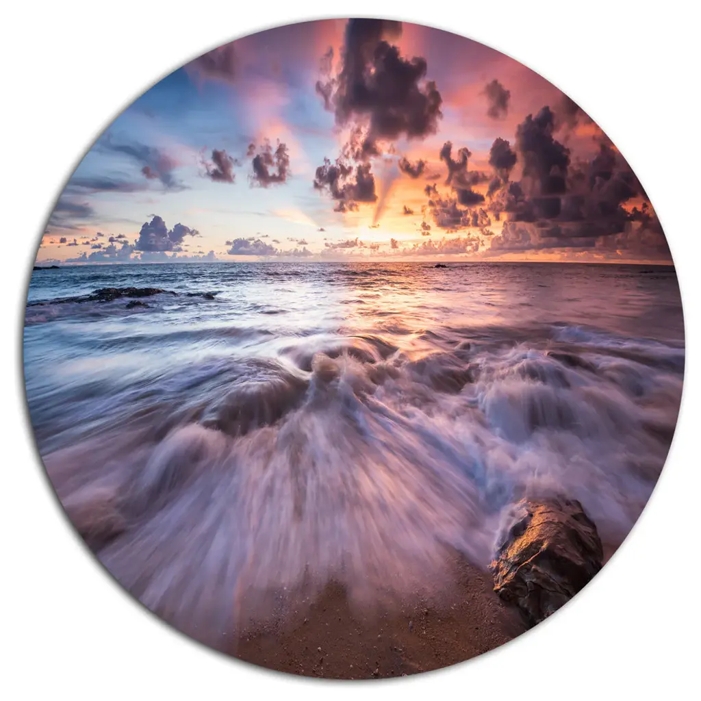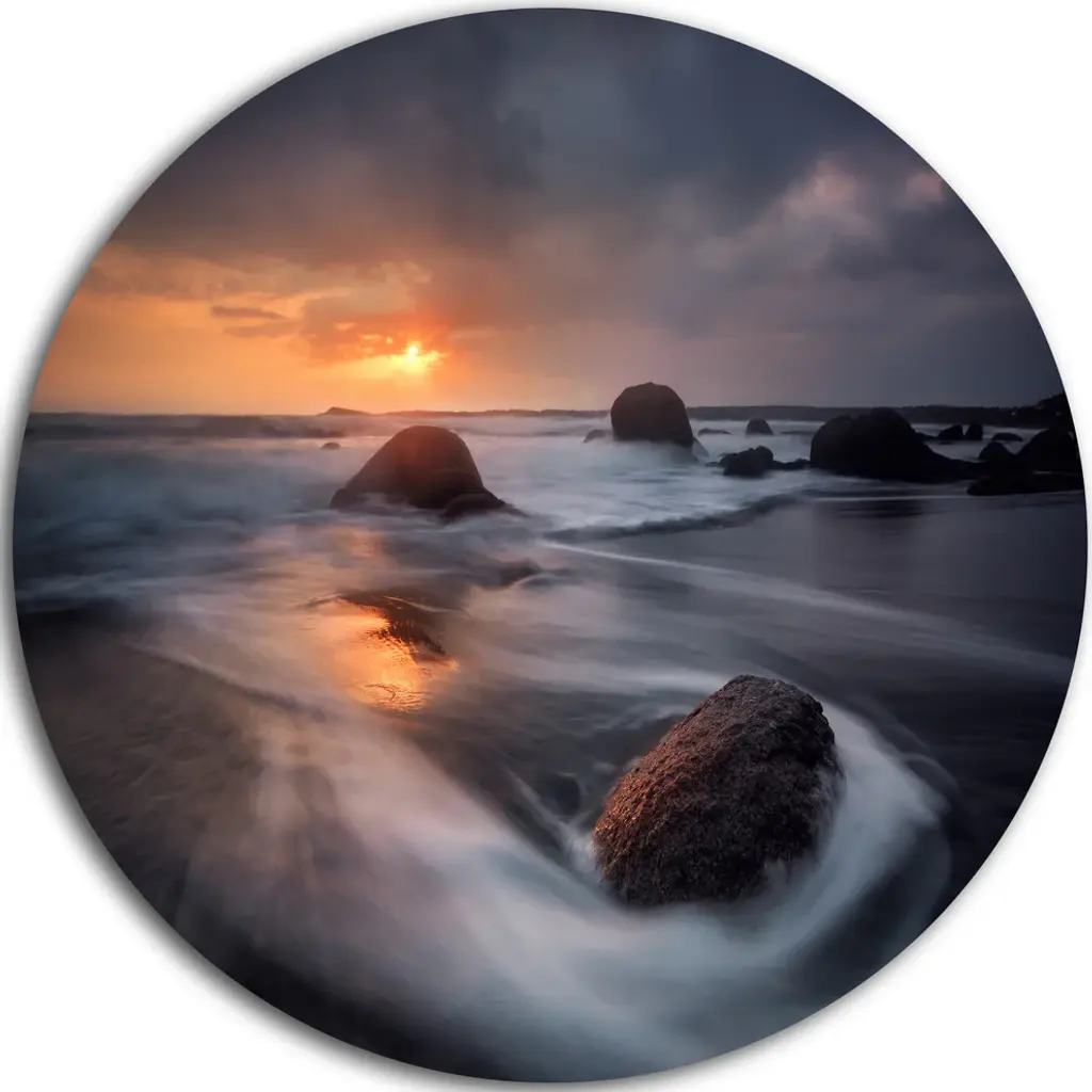 Cloudy Sky With Bright Full Yellow Sun, Beach Round Wall Art, 11"