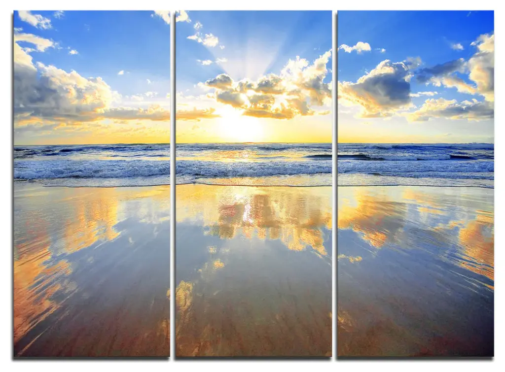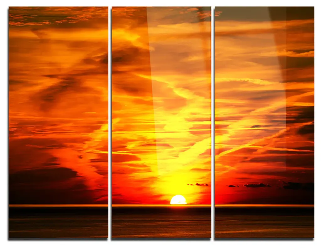 "Cloudy Sunset Reflection In Lake" Painting Metal Wall Art, 3 Panels, 36"x28"
