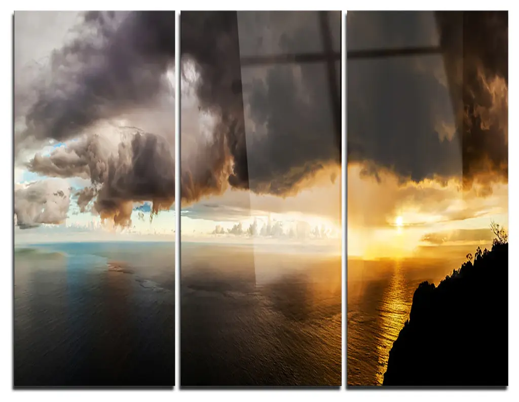 Bring contemporary abstraction to your home with this large 36W x 28H Metal Wall Art. This Cloudy Sunset Reflection in Lake Metal Artwork makes it the focal point of any room or office. - White gloss coating ensures colors are extra vibrant with light reflection.- Aluminum grade sheet metal with 1-inch mounting frame on the back giving the illusion that the artwork is floating on the wall.- Mounting brackets are included along with instructions.- High quality digital images are created directly into a glossy aluminum panel producing a stunning and captivating print into the glossy finish of the metal.- Water, fire and scratch resistant HD aluminum panels.- Looks better than any photo paper and guaranteed to last at least 20 years- Easy to clean with a microfiber cloth. Colors are far superior to regular canvas art. - Easy to hang