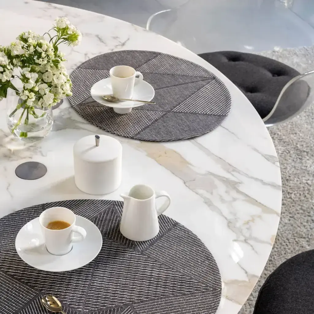 AN EXCLUSIVE COLLABORATION Inspired by the architectural structures of his own buildings, Jean Michel Wilmotte retranscribes the lines of the frameworks with force on the fabric. In love with the material, the architect's vocabulary comes to life and the weaving is like a sketchbook. With its pure and contemporary lines, the collection invites you to gather around a beautiful table with a singular identity. Let's join the Club! INSPIRATION The Wilmotte & Industries design studio, through a work of composition, balance of forms and colors, strives to find the obviousness of the object, the sensuality of the material. The research around the Jacquard was nourished by the identity of the architect, his artistic sensitivity but also his chromatic universe. He naturally revives the French art of weaving, which he had already invested in with passion in the 1980s and whose technicality and language he has mastered. The patterns of the tablecloths and napkins reflect his projects. The Jacquard warp and weft threads intertwine, with precision and subtlety, to sketch the geometric pattern. We find the same constructive gesture in the architectural structure of the building and in the weave of the Jjacquard weaving; the two answer and harmonize to give place to an intimate, contemporary and confidential universe. Since 1888, Le Jacquard Francais has created a collection of table linens without equal. Weavers, warp beamers, knotters and other specialists work in harmony to perfect the weaves and colors of all of their linens. Classic Le Jacquard Francais linens are characterized by using framed woven patterns to create timeless tablecloths, napkins, placemats and table runners that will beautify your tables for many years. Le Jacquard Francais coated tablecloths are made of 100% cotton weave with long fibers. They are waterproof and stain-resistant thanks to a patented and exclusive acrylic coating that withstands washing. Newly introduced, LJF by Le Jacquard Francais is a more casual line of contemporary looks that mixes colors and patterns and plays with graphics. Practical and easy to use, these tablecloths will stand up to frequent use in the kitchen or patio.