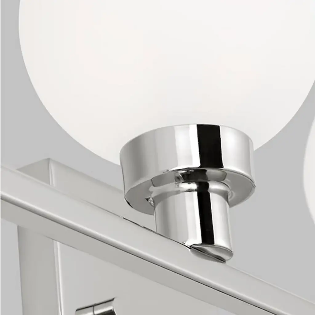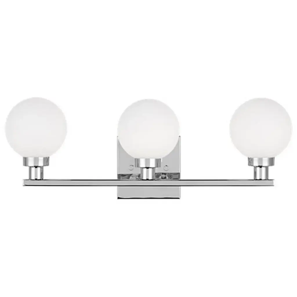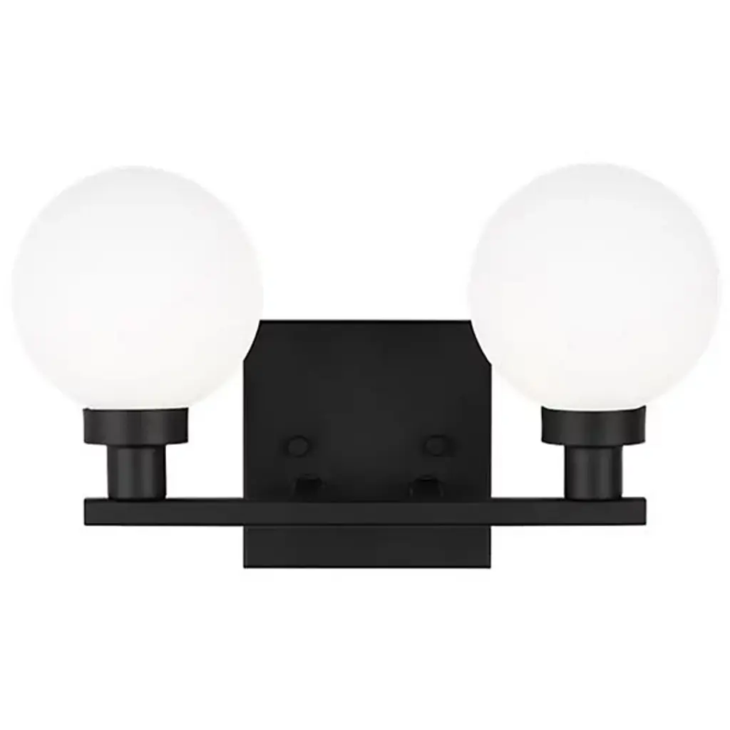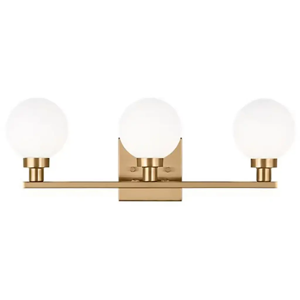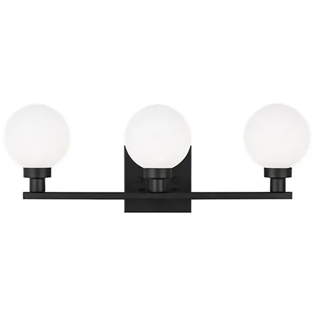 Boasting bold globes of milk glass and contrasting finishes, the Clybourn Vanity Light from Visual Comfort Studio, formerly known as Sea Gull Lighting, exhibits a mixture of drama, elegance, and fun. It features a three-light single-tier chandelier for an industrial yet minimalist design, making this fixture perfect for an eclectic living room or over a modern dining room table. Milk glass gives this fixture a more current look.