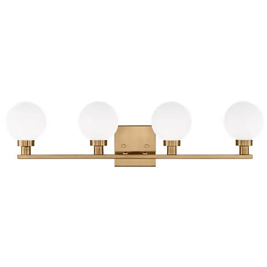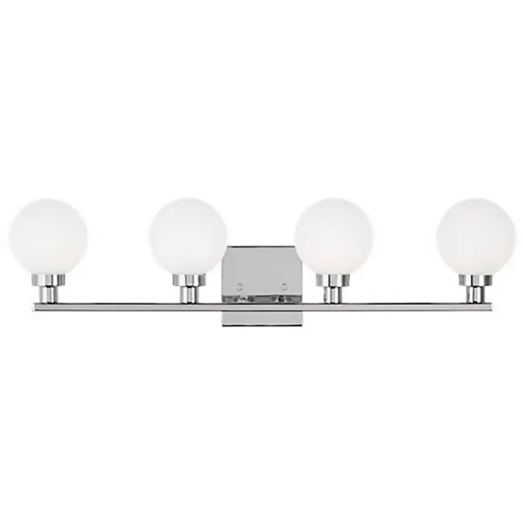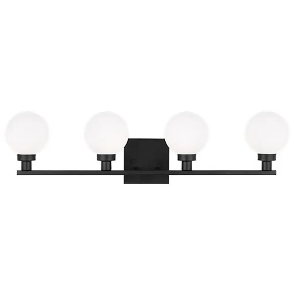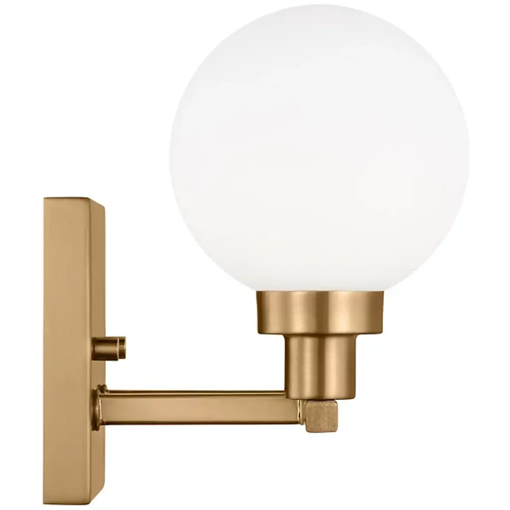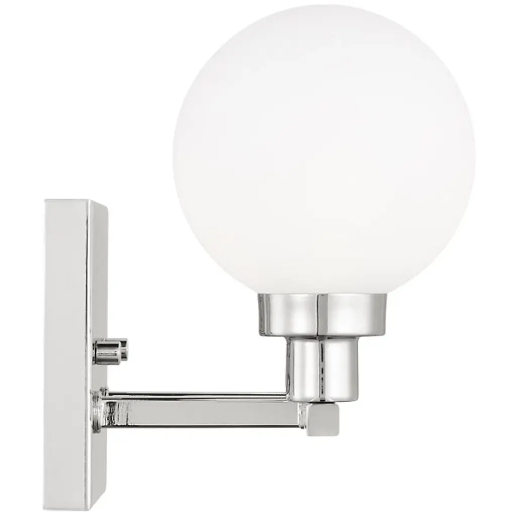 Boasting bold globes of milk glass and contrasting finishes, the Clybourn Vanity Light from Visual Comfort Studio, formerly known as Sea Gull Lighting, exhibits a mixture of drama, elegance, and fun. It features a three-light single-tier chandelier for an industrial yet minimalist design, making this fixture perfect for an eclectic living room or over a modern dining room table. Milk glass gives this fixture a more current look.