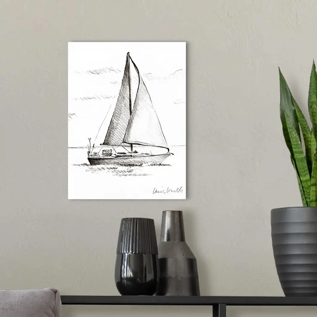 Coastal Boat Sketch I wall art for home and office decor. Discover canvas art prints, photos, mural, big canvas art and framed wall art in GreatBigCanvas.com's varied collections.