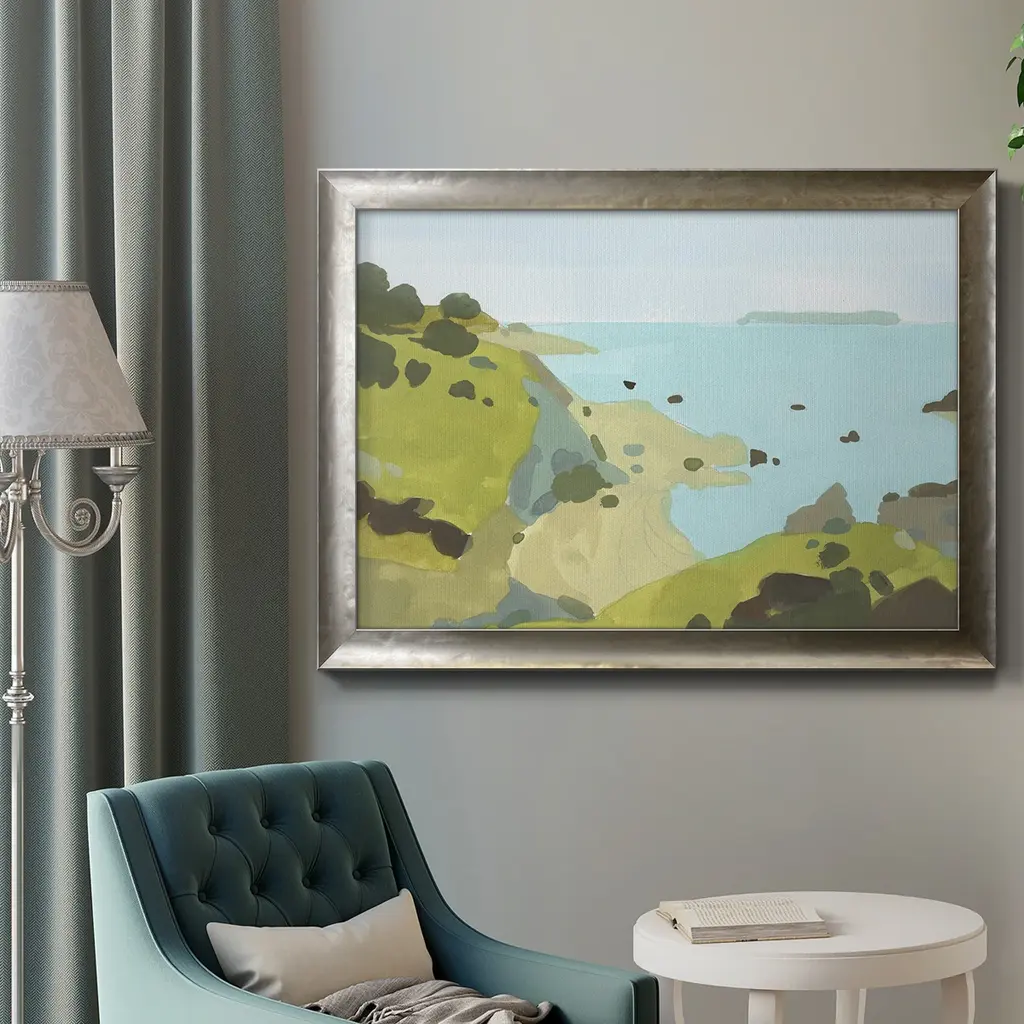 Coastal Inlet I Premium Framed Canvas- Ready to Hang A Premium Framed Canvas created to last. Framed in distressed wood and available in an array of sizes and colors Featuring a beveled a solid wood stretcher bar, each piece comes ready to hand 3 SIZES AVAILABLE 16''X20'' - Overall Size 18'X27'' - Overall Size 24''x36'' - Overall Size Each piece is made to order. Each piece comes with hanging hardware. Made in the USA Ready to Hang Giclee Paper Print Acrylic Glass Beveled Matt Board