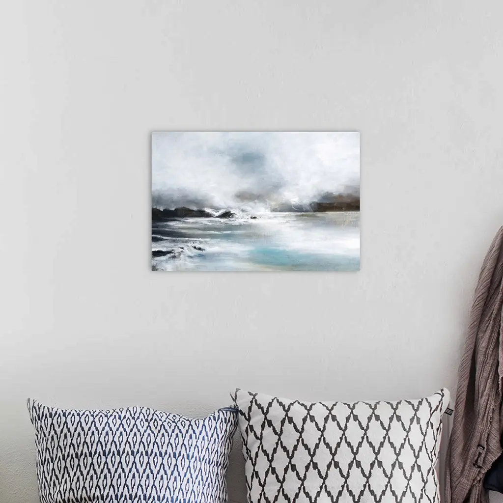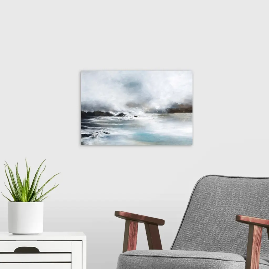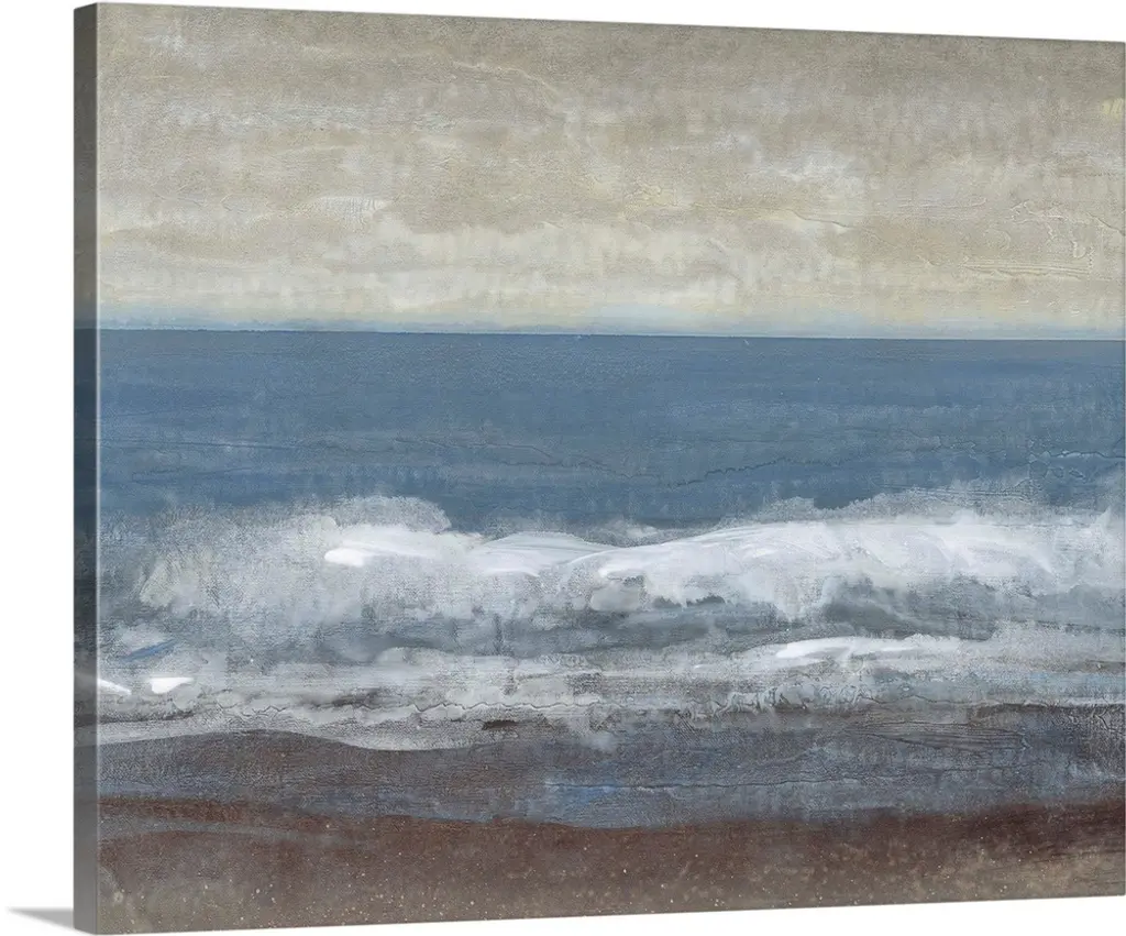 Contemporary artwork of a seascape with mild waves on a cloudy day.