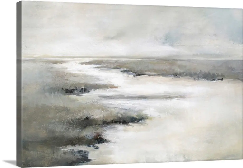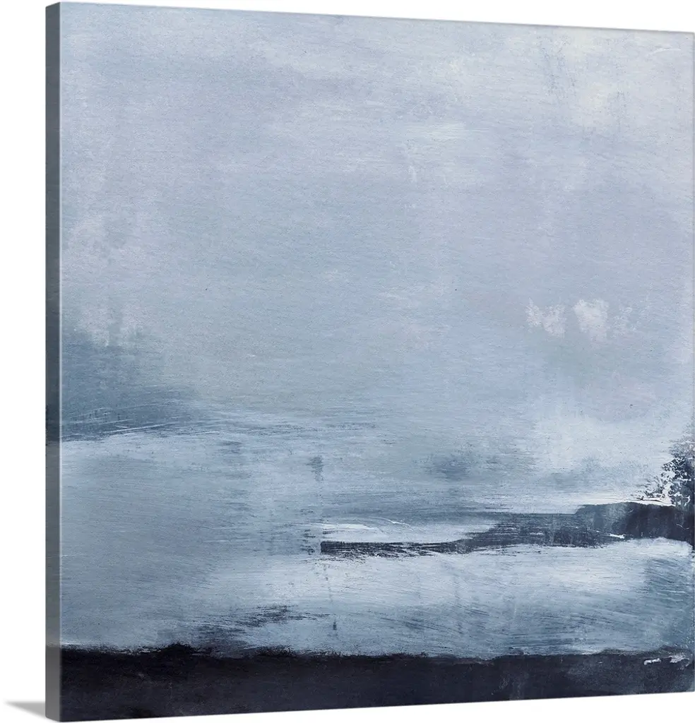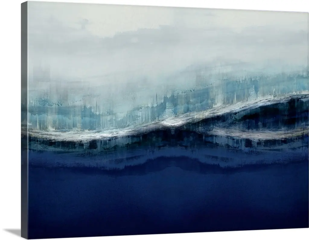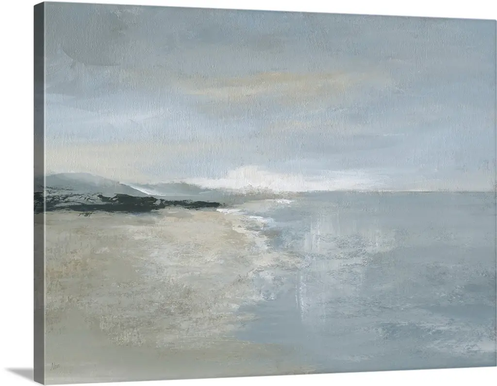Contemporary artwork of a seascape with mild waves on a cloudy day.