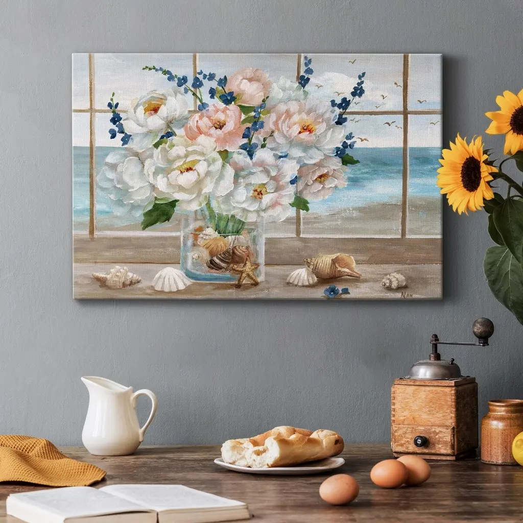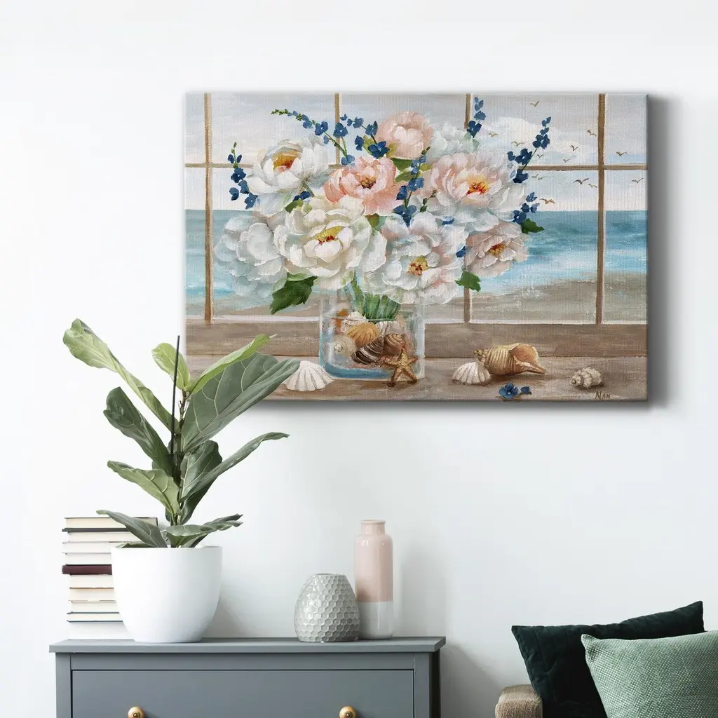 Coastal Window Premium Gallery Wrapped Canvas - Ready to Hang A premium hand stretched gallery wrapped canvas print created to last. Featuring a beveled a solid wood stretcher bar, each piece comes ready to hand 5 SIZES AVAILABLE 8''X12'' - Overall Size 16'X20'' - Overall Size 24''x32'' - Overall Size 30''x40'' - Overall Size 36''x48'' - Overall Size Each piece is made to order. Built to Last Each piece comes ready to hang Solid wood stretcher Fade and Water resistant Made domestically