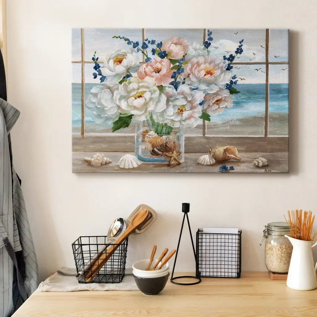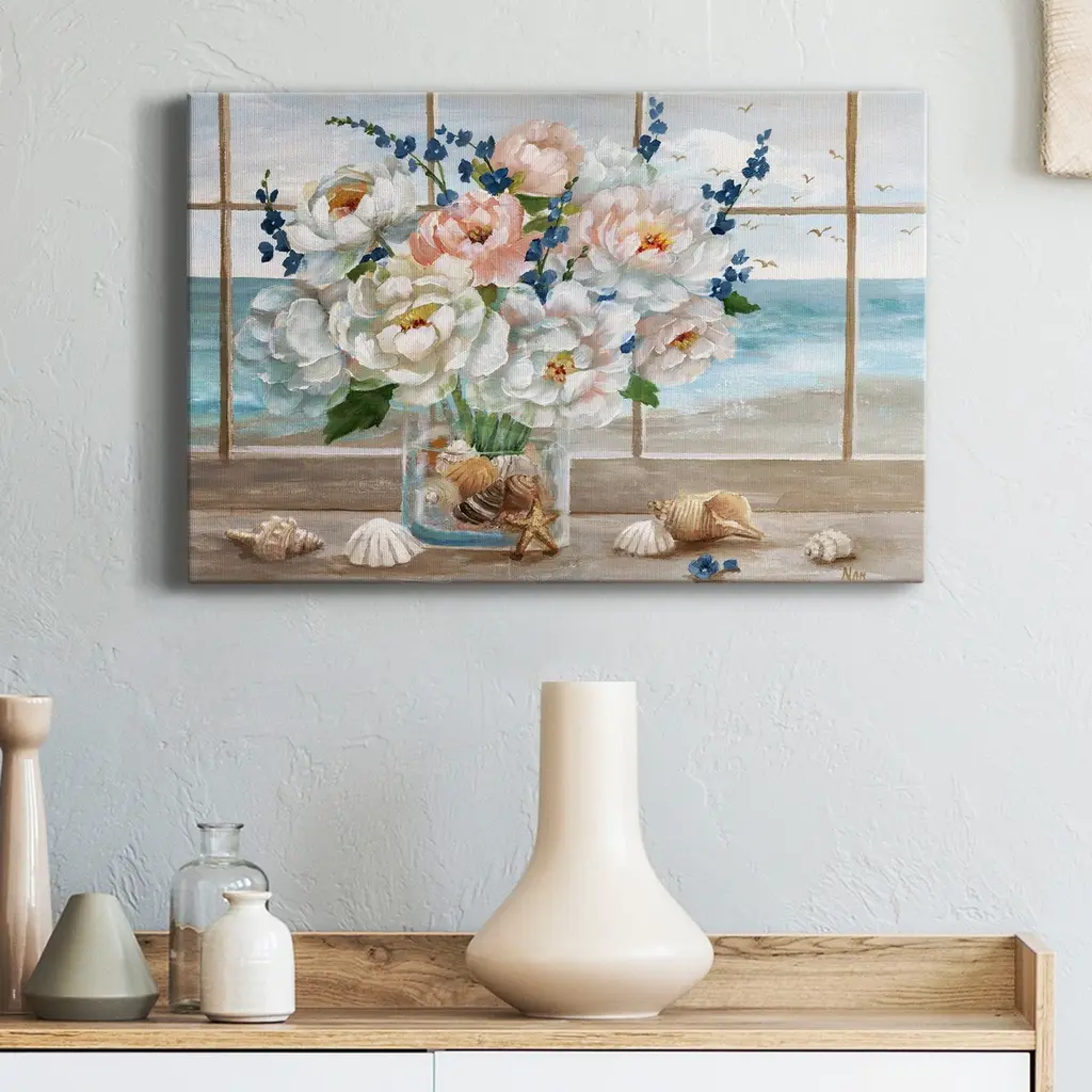 Coastal Window Premium Gallery Wrapped Canvas - Ready to Hang A premium hand stretched gallery wrapped canvas print created to last. Featuring a beveled a solid wood stretcher bar, each piece comes ready to hand 5 SIZES AVAILABLE 8''X12'' - Overall Size 16'X20'' - Overall Size 24''x32'' - Overall Size 30''x40'' - Overall Size 36''x48'' - Overall Size Each piece is made to order. Built to Last Each piece comes ready to hang Solid wood stretcher Fade and Water resistant Made domestically