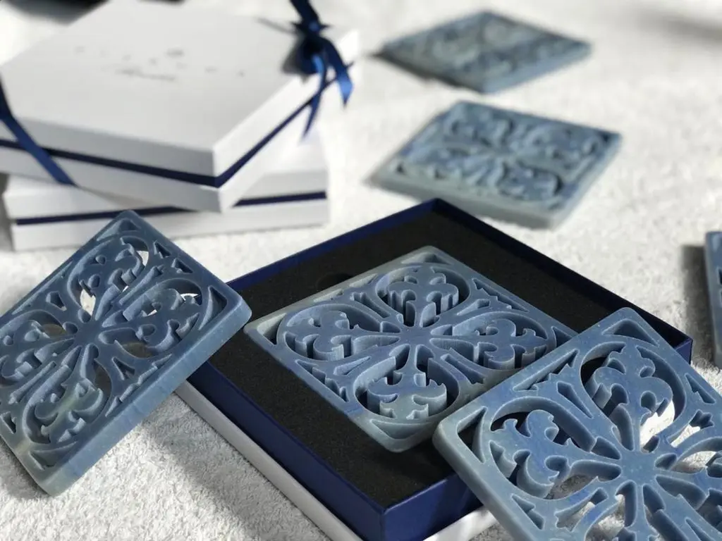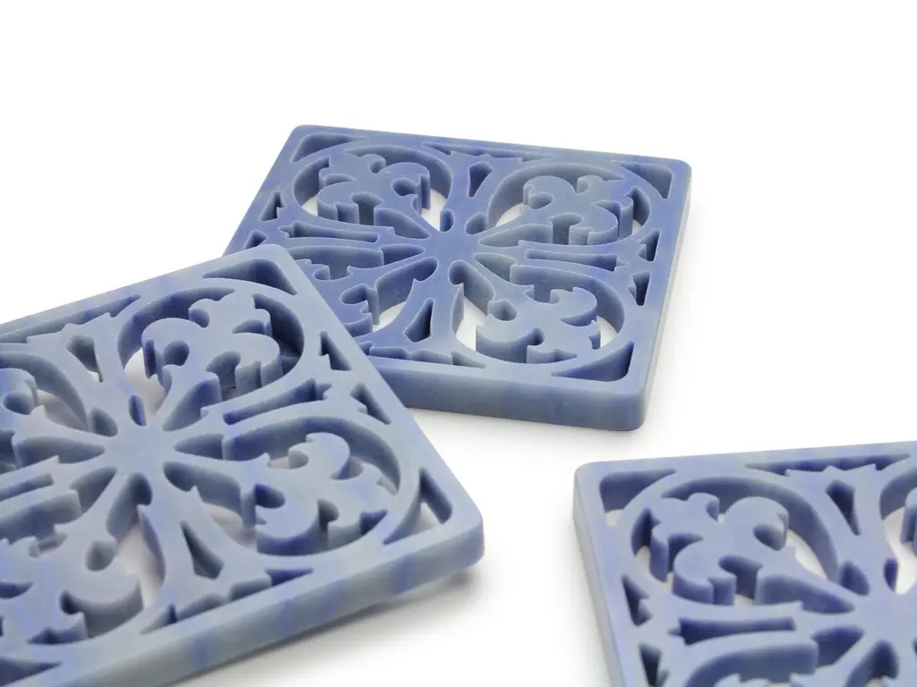 Coaster Barware Blue Azul Macaubas Marble Majolica Pattern Handmade Italy
