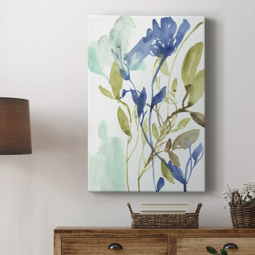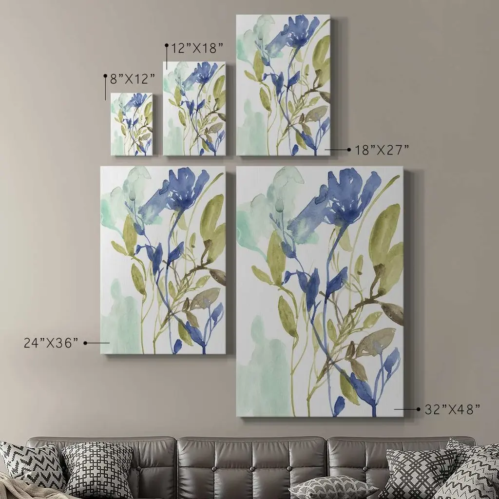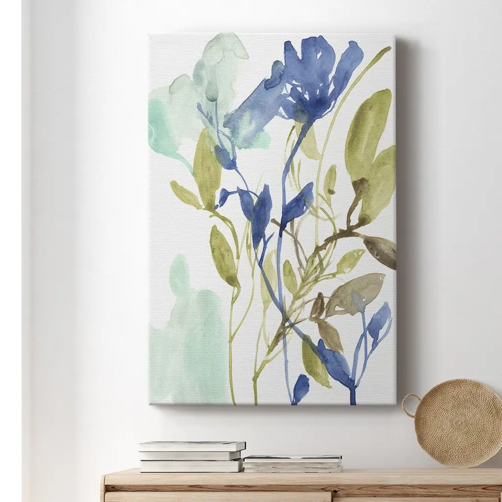 Cobalt & Olive Bouquet II Premium Gallery Wrapped Canvas - Ready to Hang A premium hand stretched gallery wrapped canvas print created to last. Featuring a beveled a solid wood stretcher bar, each piece comes ready to hand 6 SIZES AVAILABLE 8''X12'' - Overall Size 12''X18'' - Overall Size 18''X27'' - Overall Size 24''x36'' - Overall Size 32''x48'' - Overall Size 40''x60'' - Overall Size Each piece is made to order. Built to Last Each piece comes ready to hang Solid wood stretcher Fade and Water resistant Made domestically