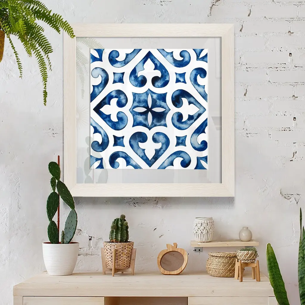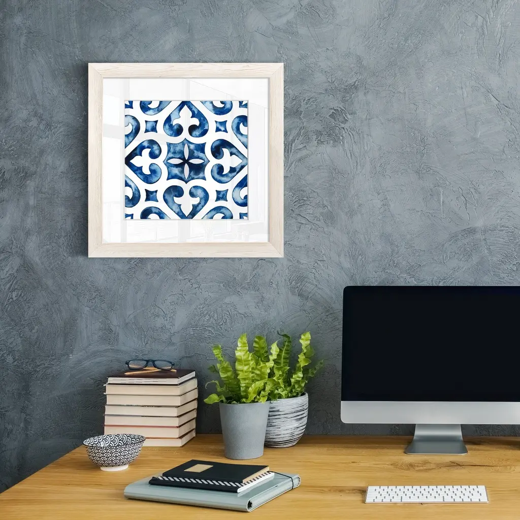 Cobalt Tiles Vi -Premium Framed Print - Ready To Hang - Black - 17 X 17