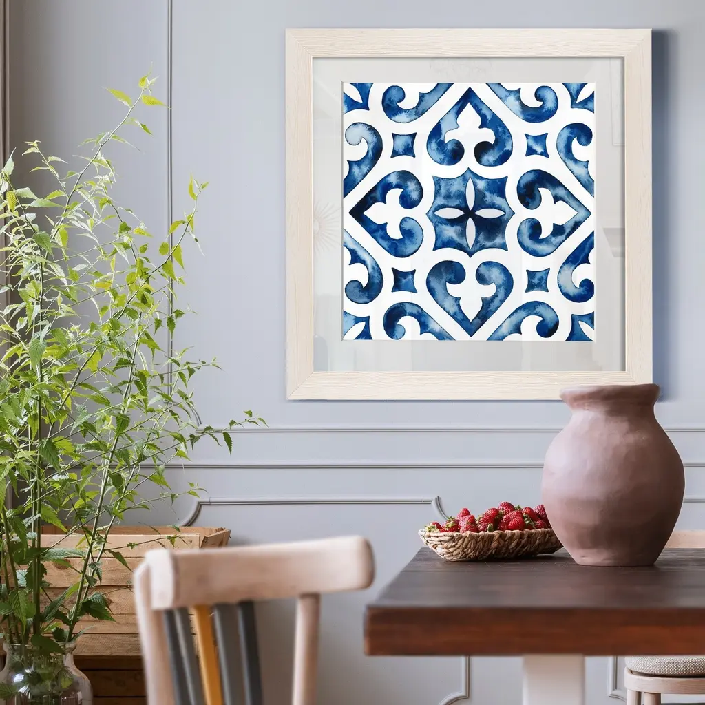Cobalt Tiles Vi -Premium Framed Print - Ready To Hang - Black - 36 X 36
